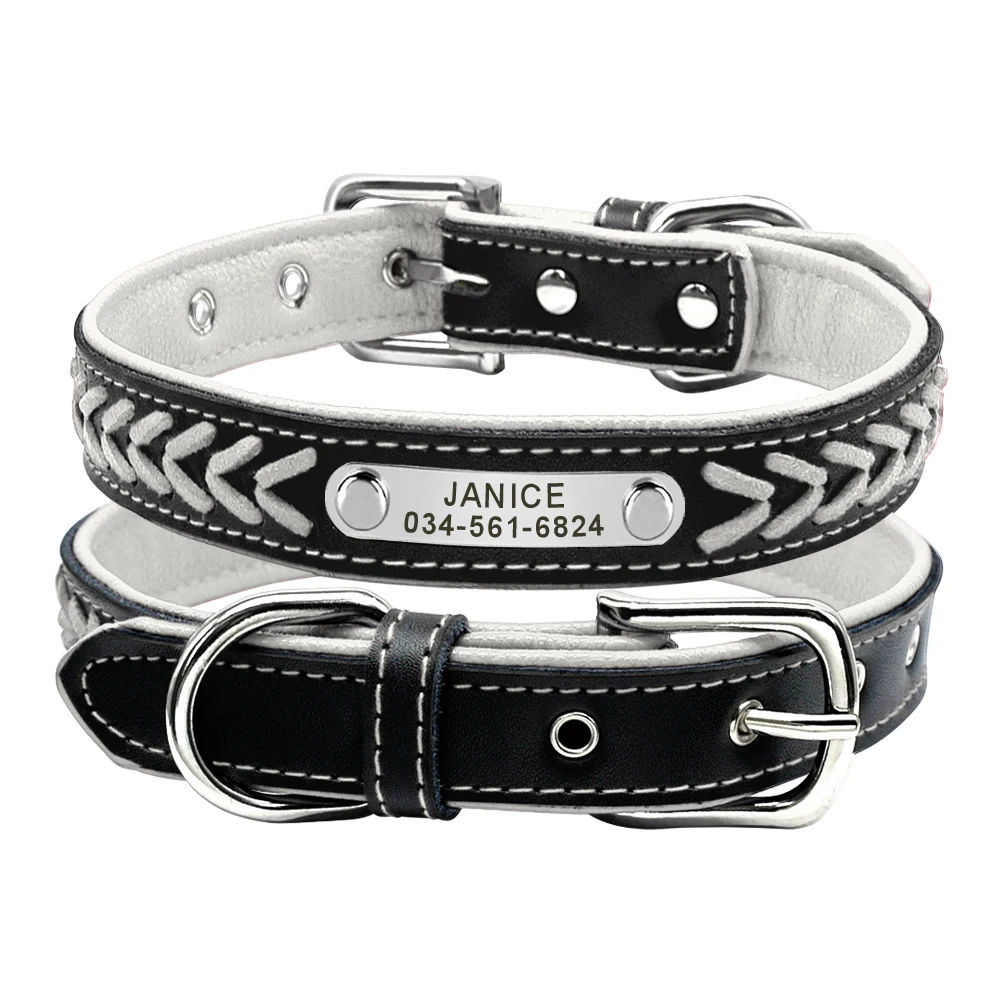 Tipo: Collar de cuero para perros pieranzlied grabado Collar para cachorros personalizado con etiqueta de identificación para mascotas Grabado gratuito para perros pequeños y medianos