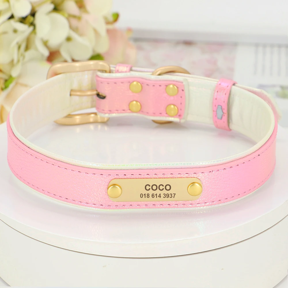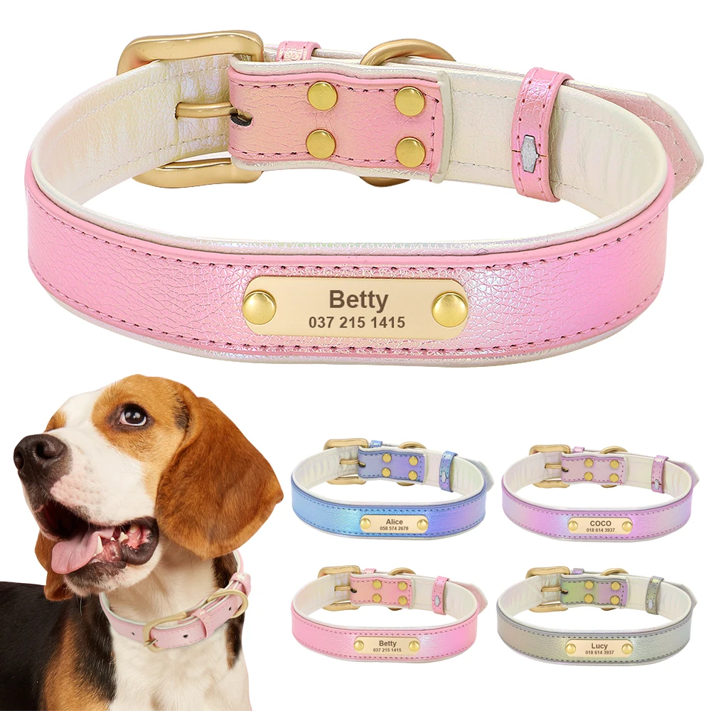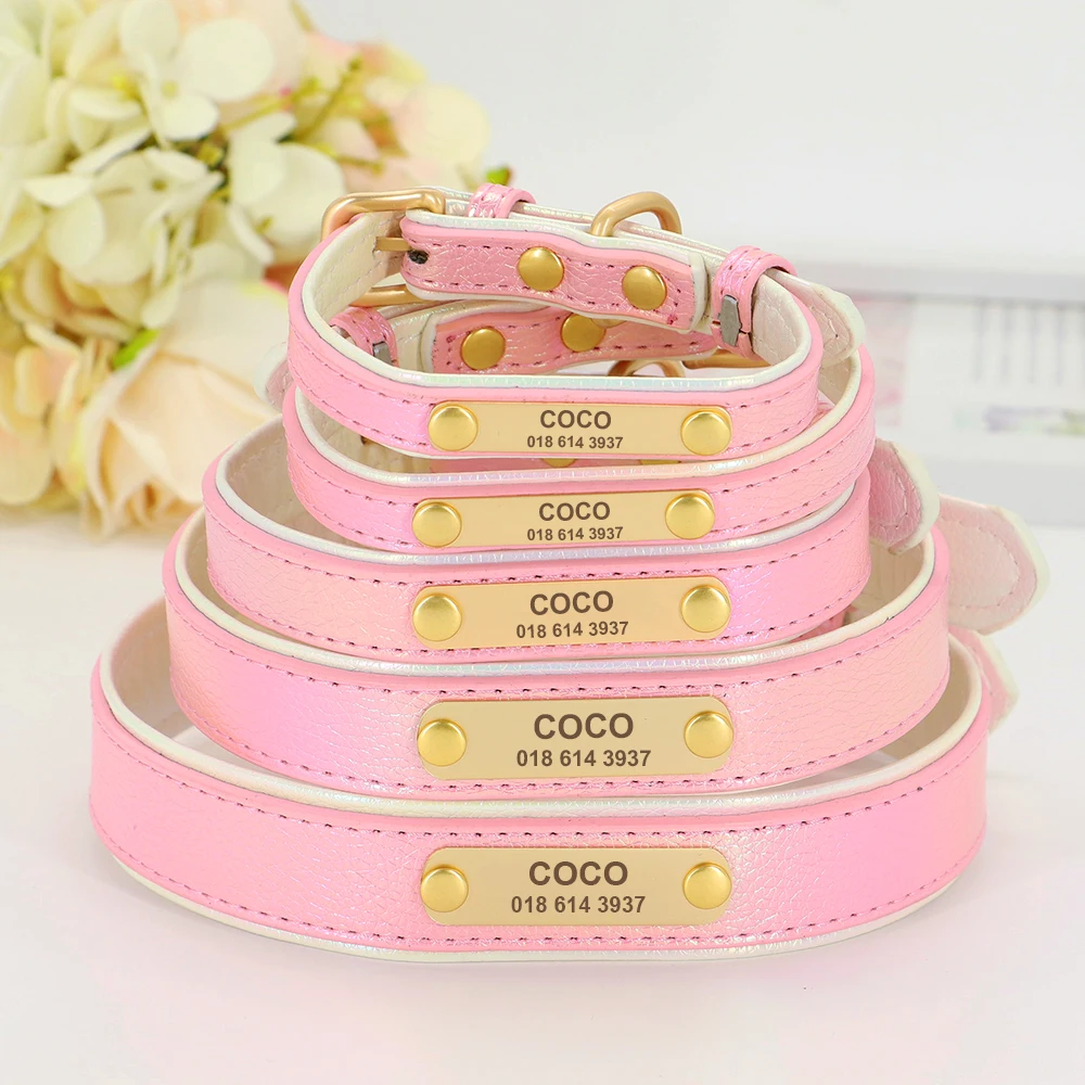 Nombre: Collar de cuero de PU personalizado para perros, collares suaves para cachorros, collar con nombre de gato grabado, ajustable para perros pequeños, medianos y grandes