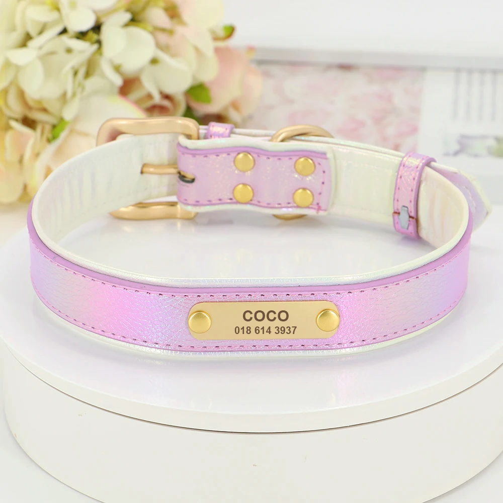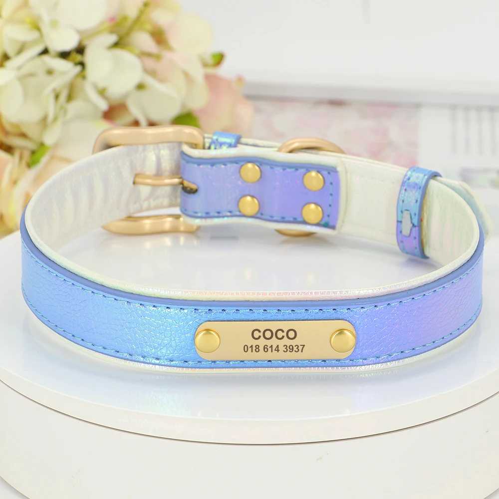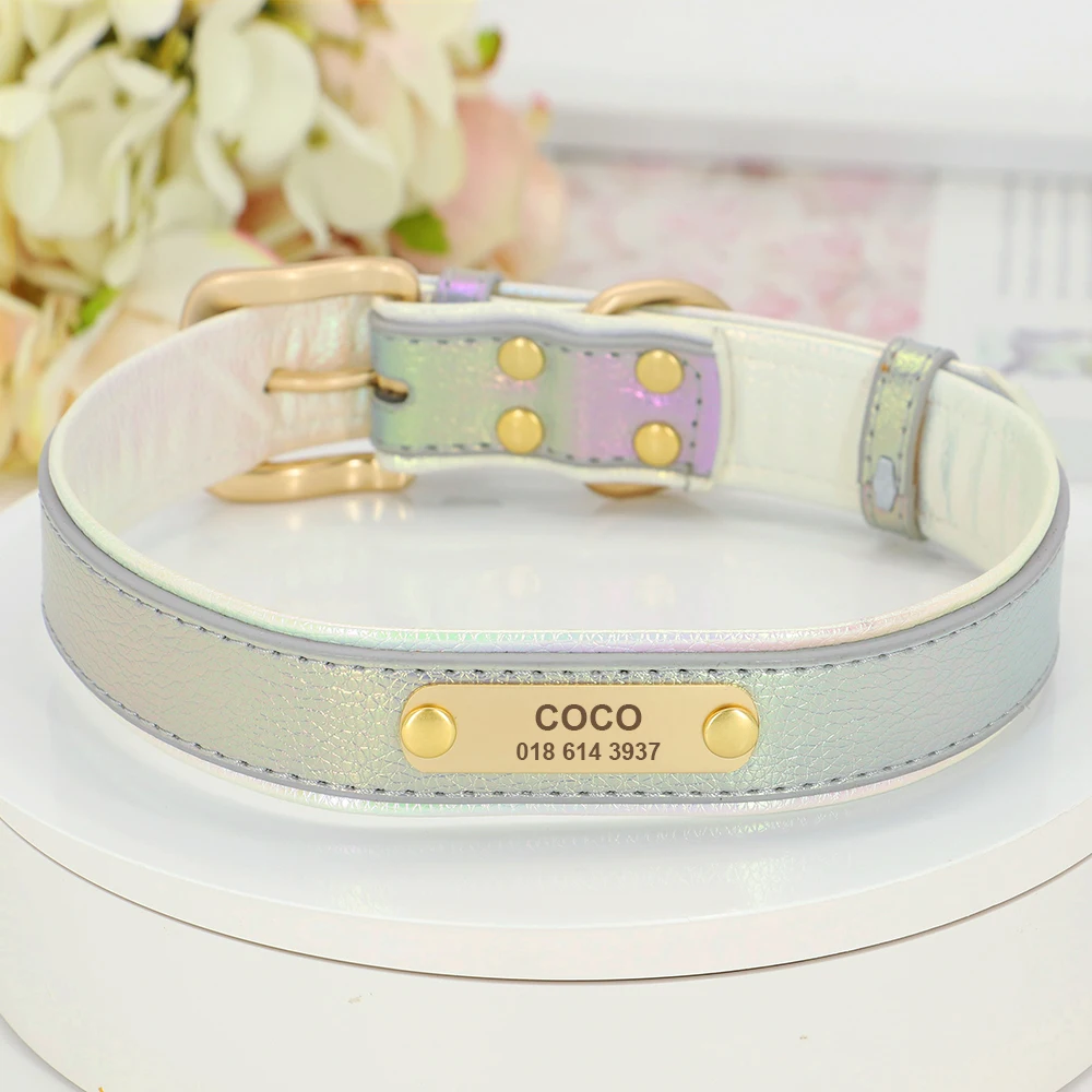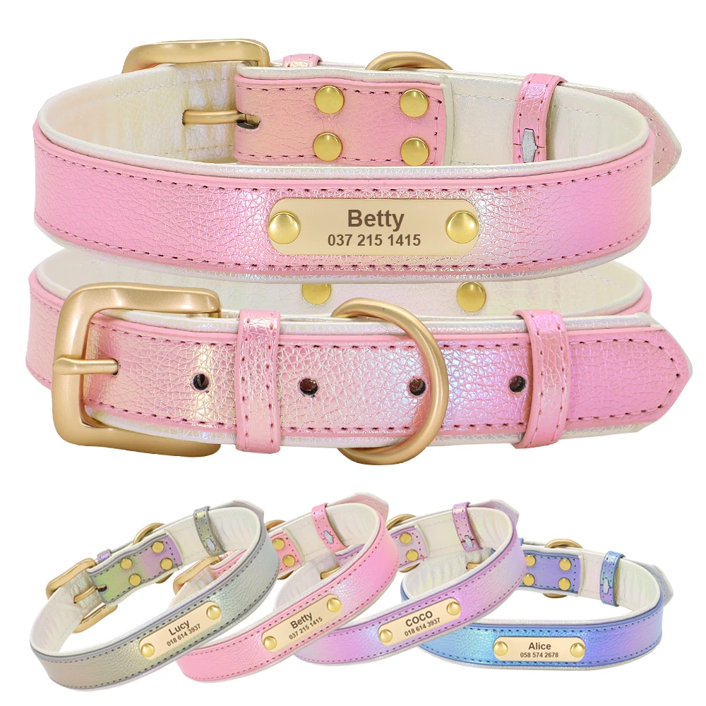 Nombre: Collar de cuero de PU personalizado para perros, collares suaves para cachorros, collar con nombre de gato grabado, ajustable para perros pequeños, medianos y grandes
