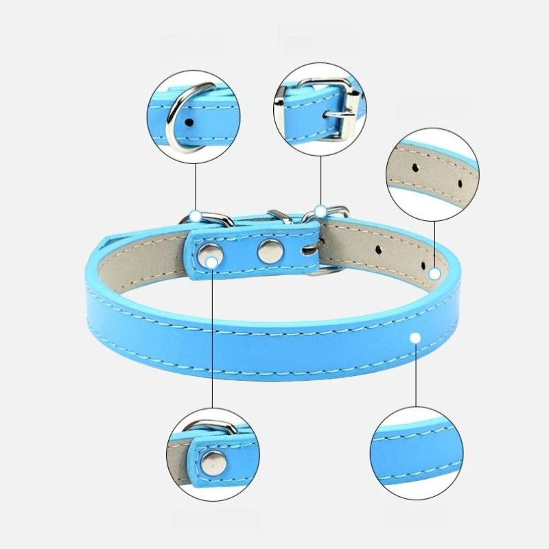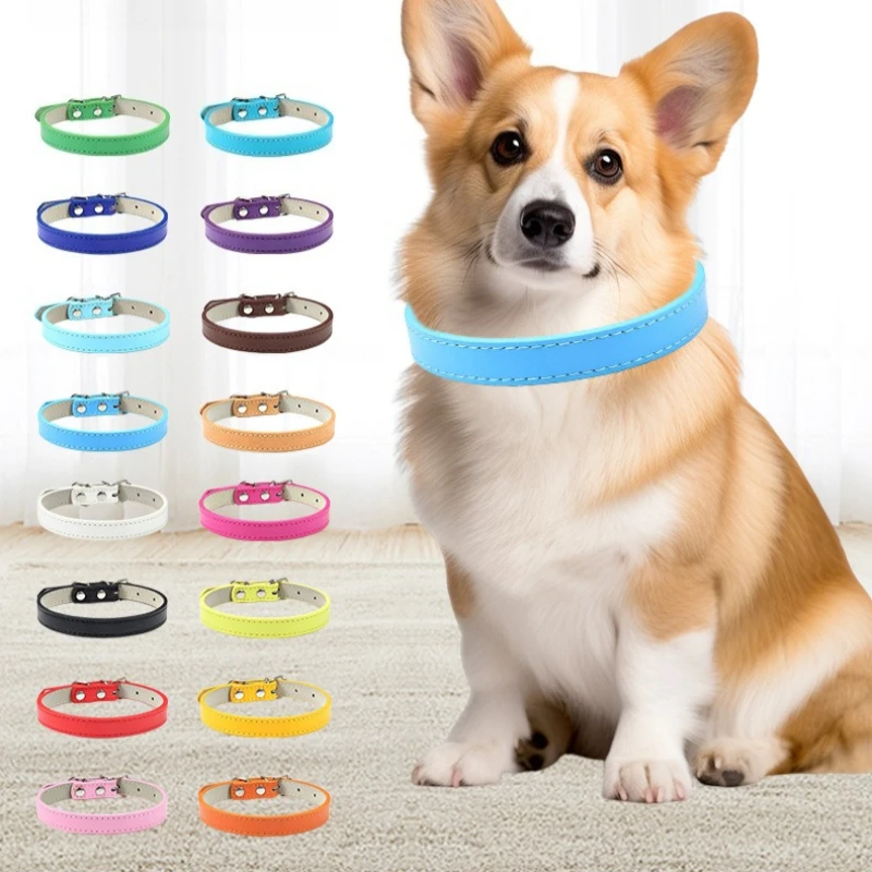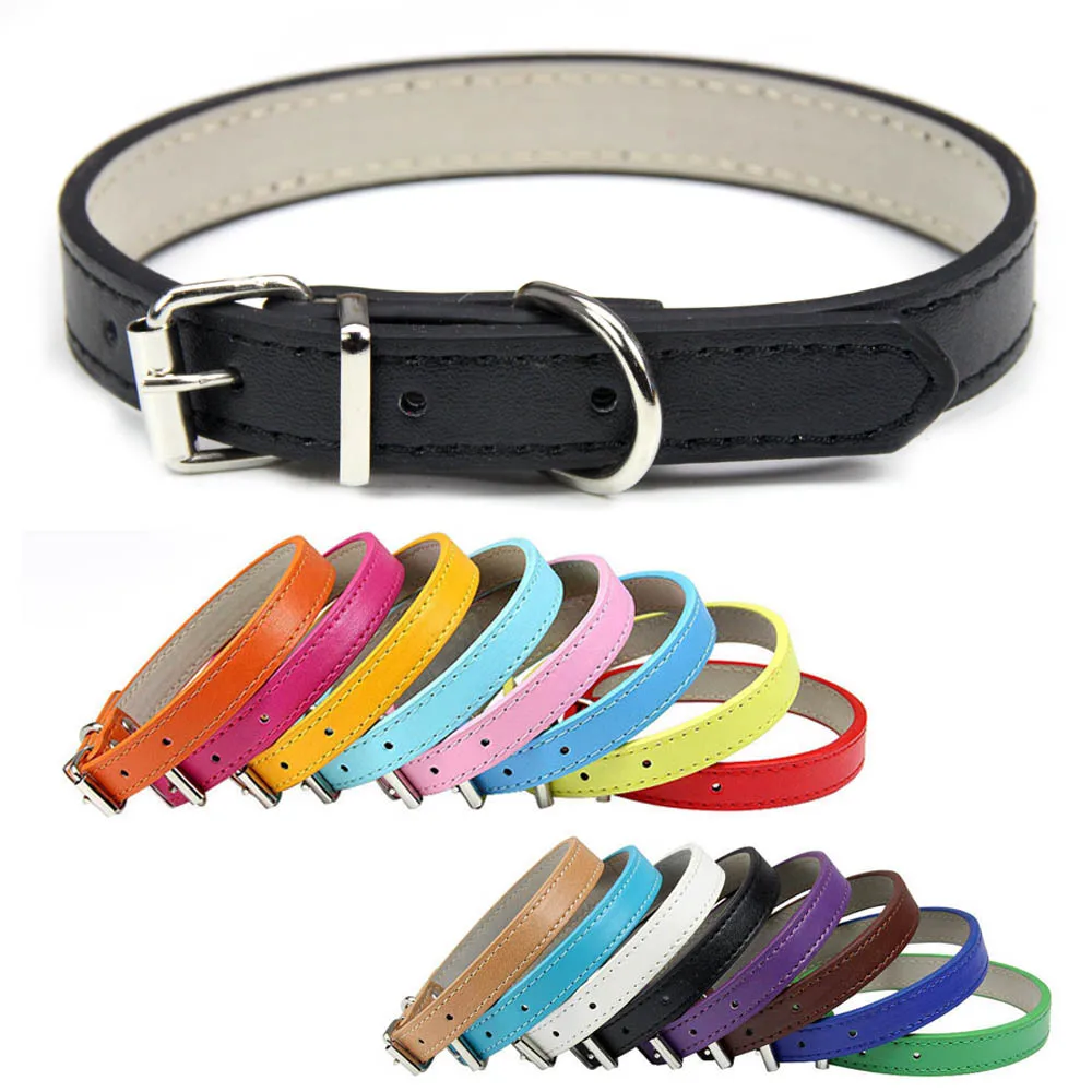 Collar de perro de cuero suave, Collar ajustable para mascotas de Color sólido para perros pequeños, medianos y grandes, Collar Simple para cachorros y gatos