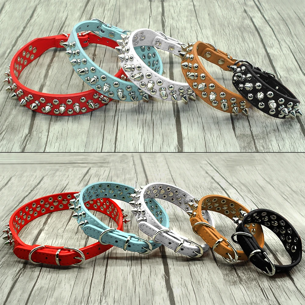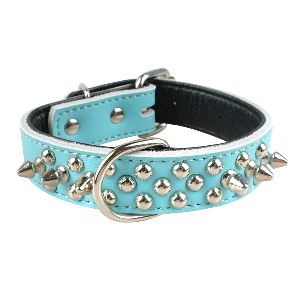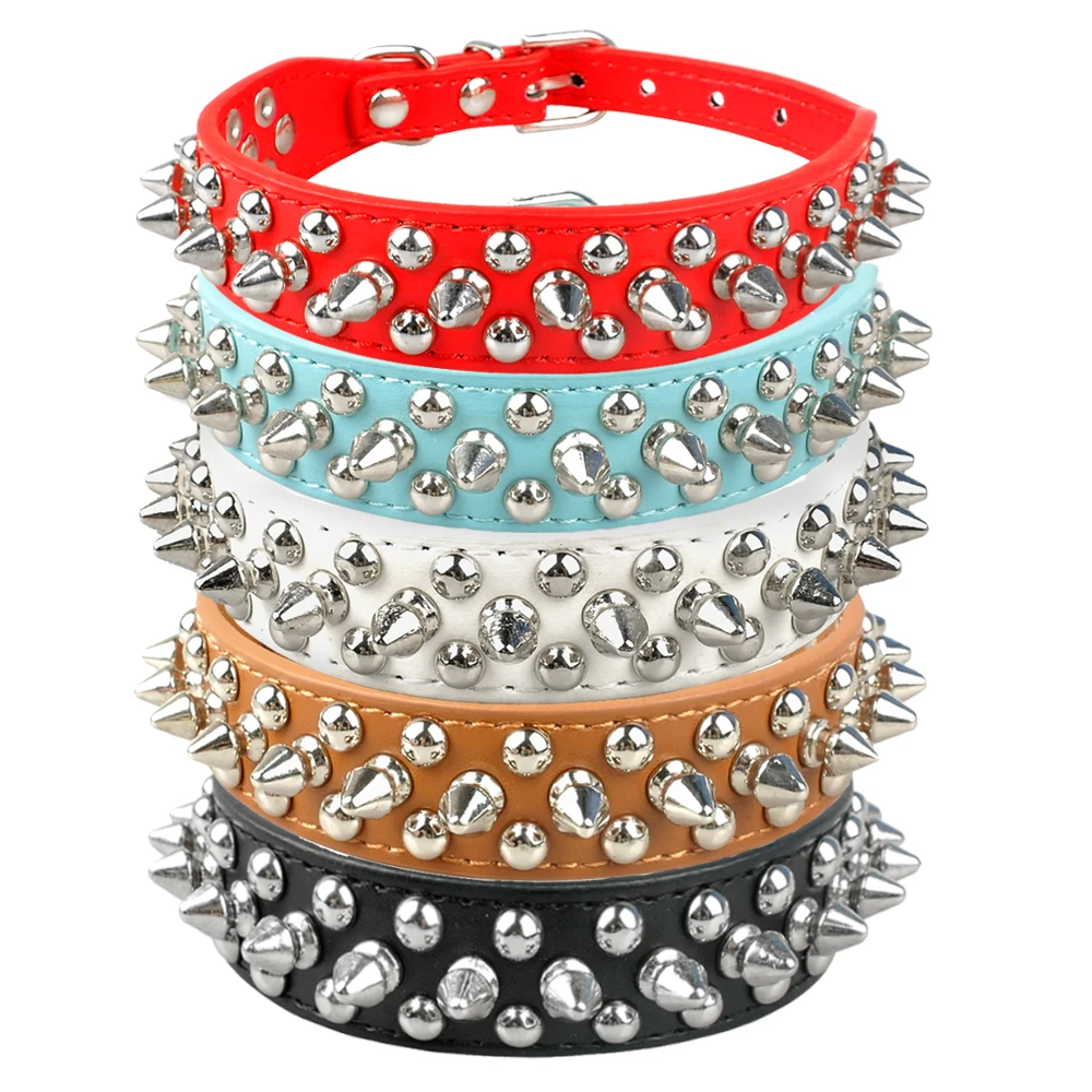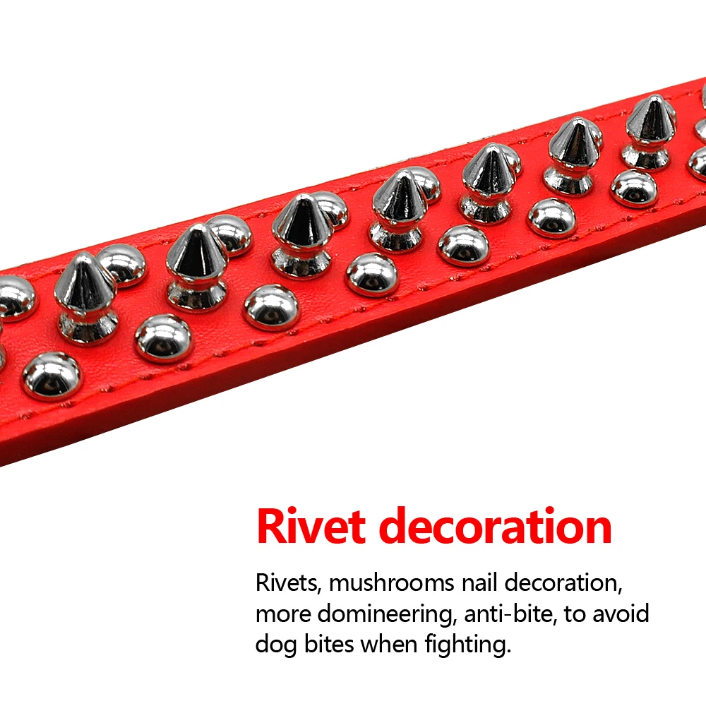 Tipo: Collar de perro de cuero con tachuelas y púas para perros pequeños y medianos Bulldog Collares con correa para el cuello para cachorros antimordeduras ajustables Accesorios para mascotas