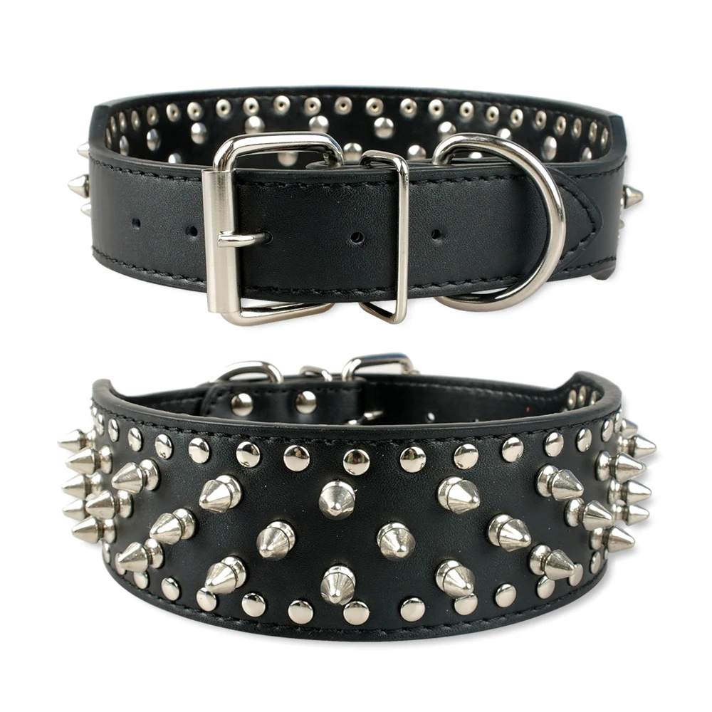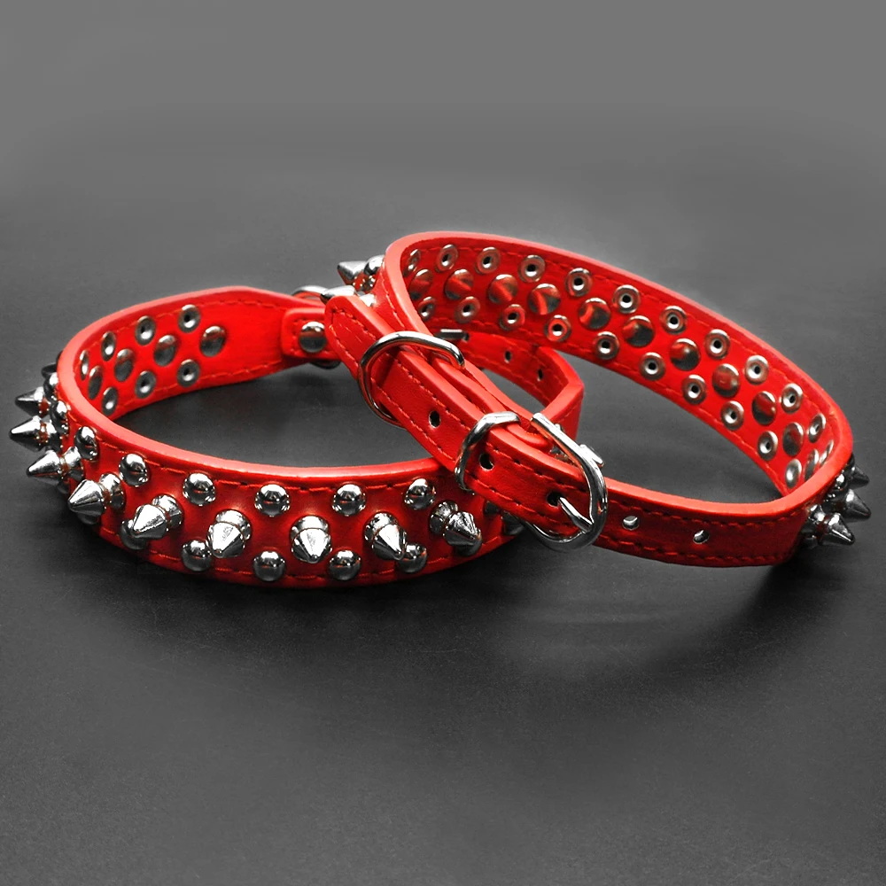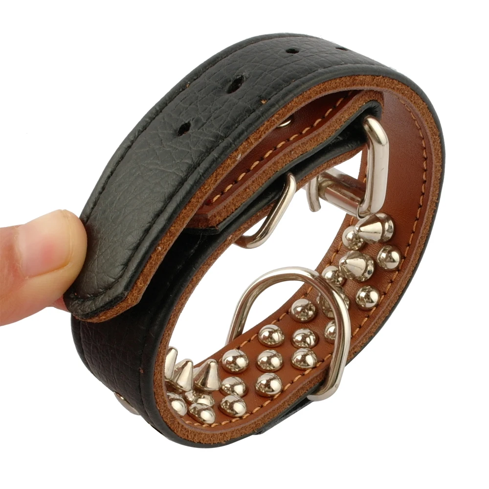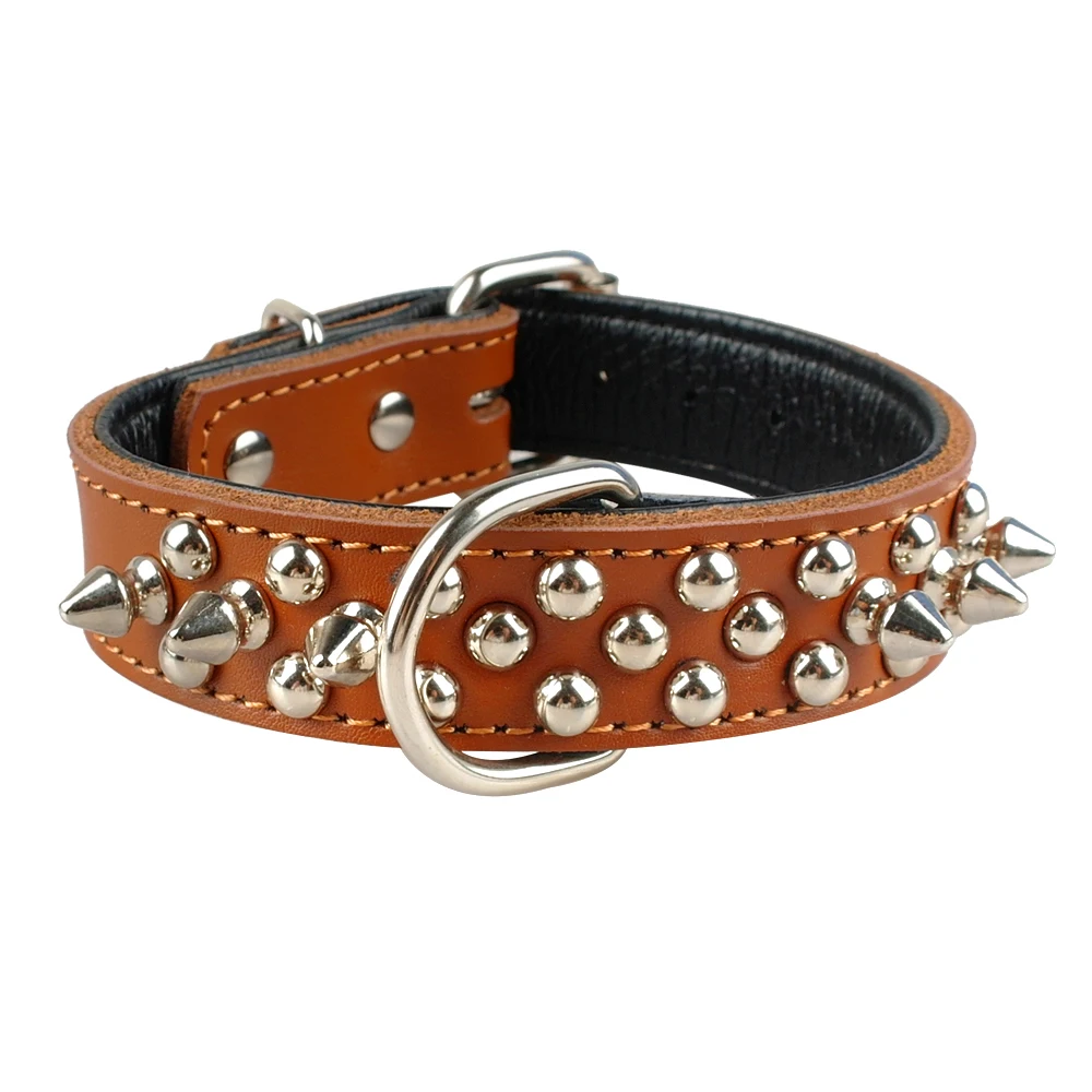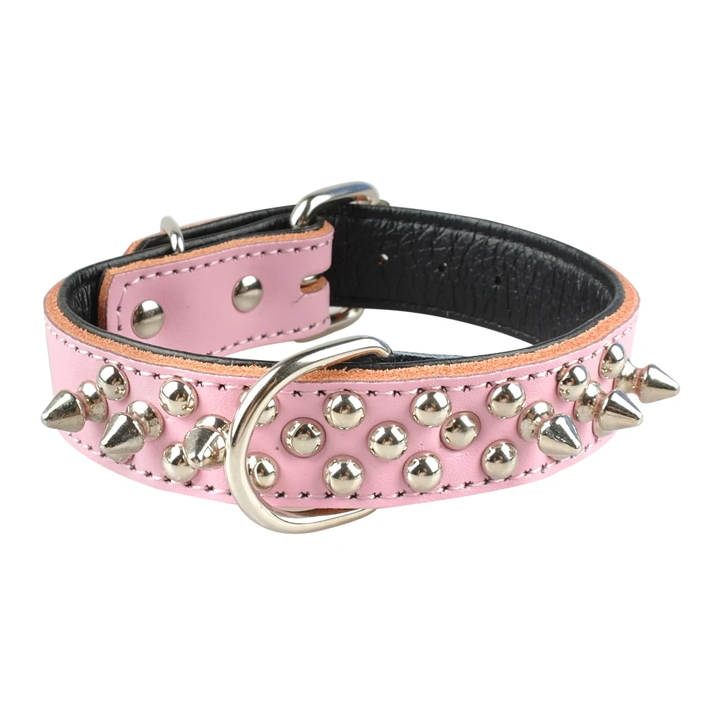 Tipo: Collar de perro de cuero con tachuelas y púas para perros pequeños y medianos Bulldog Collares con correa para el cuello para cachorros antimordeduras ajustables Accesorios para mascotas