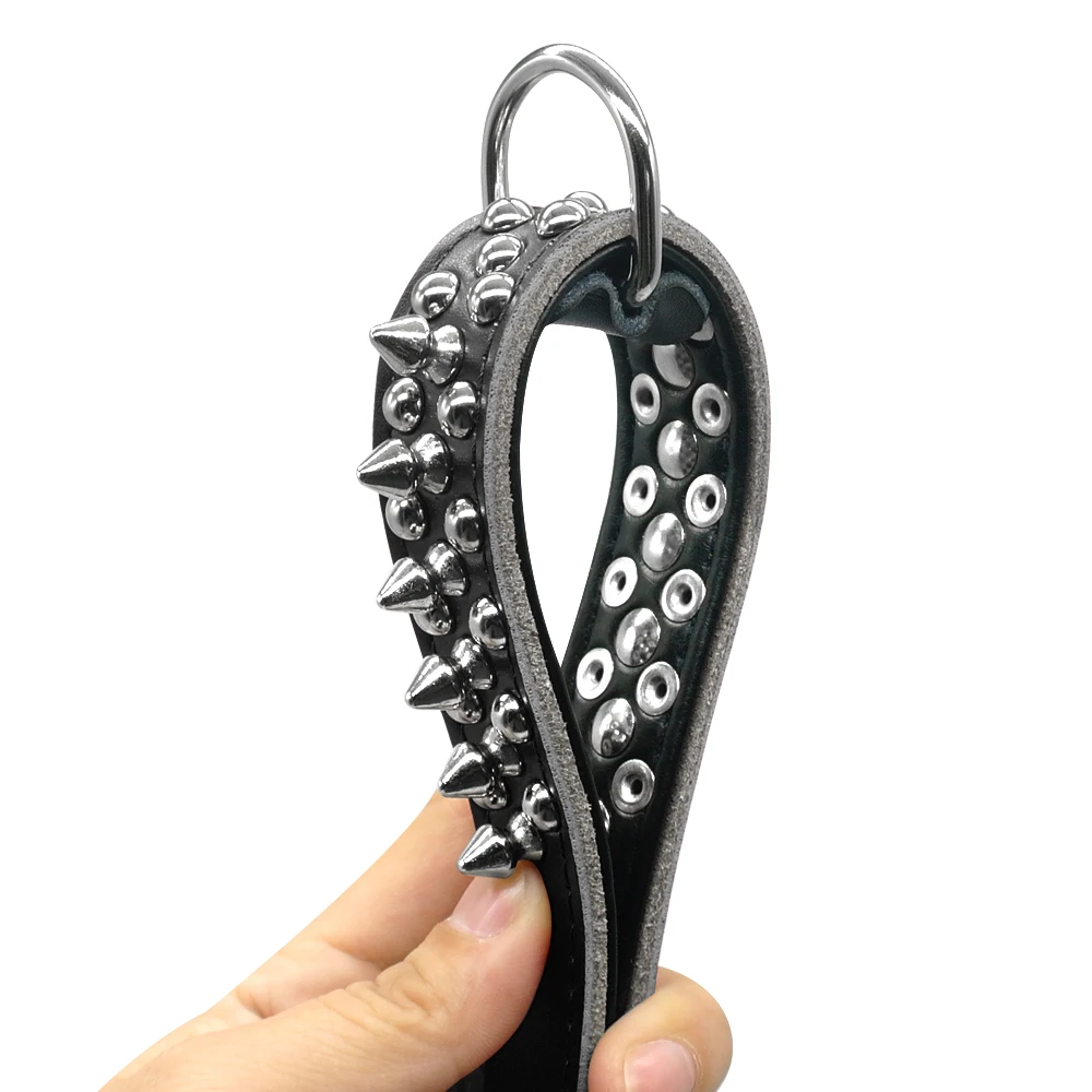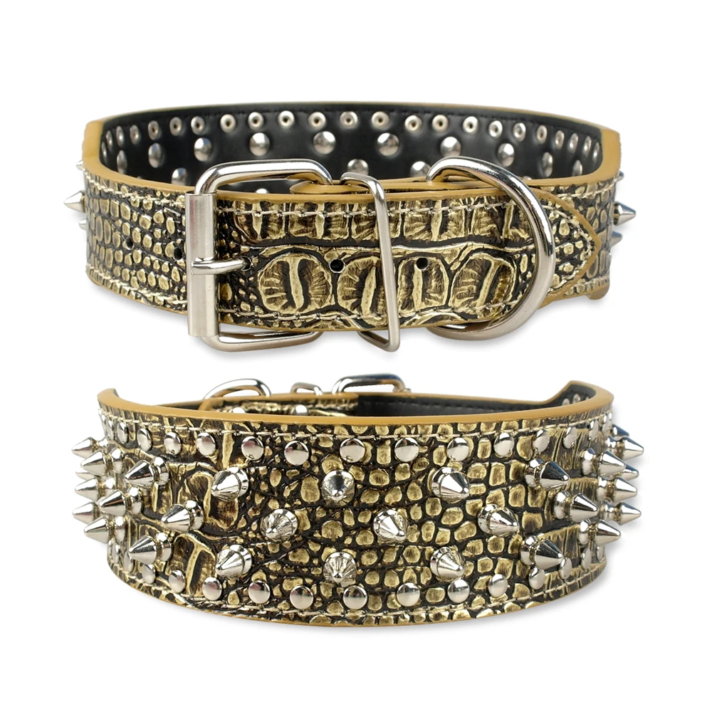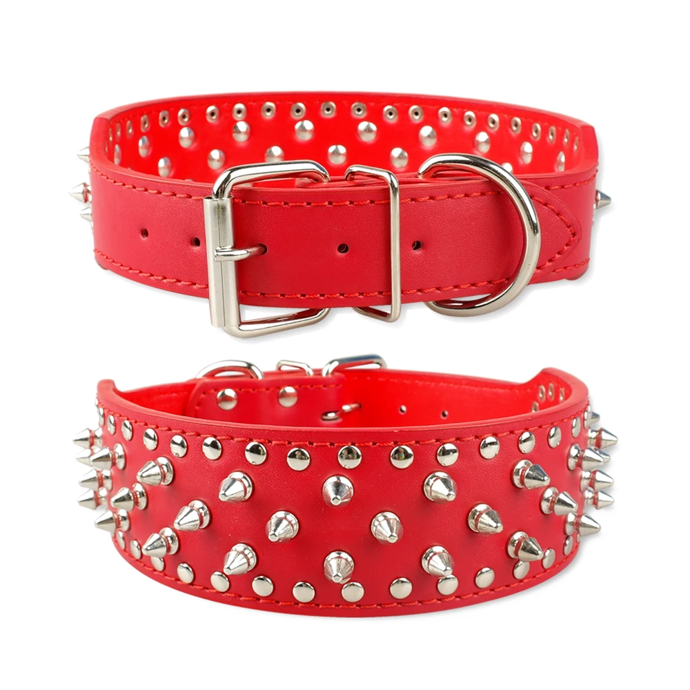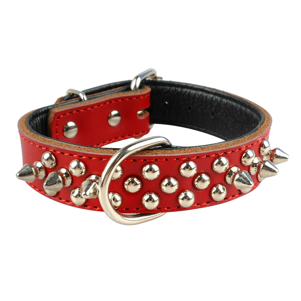 Tipo: Collar de perro de cuero con tachuelas y púas para perros pequeños y medianos Bulldog Collares con correa para el cuello para cachorros antimordeduras ajustables Accesorios para mascotas