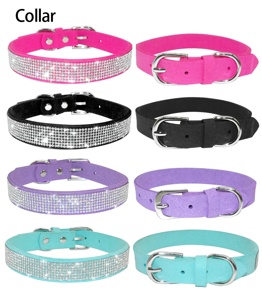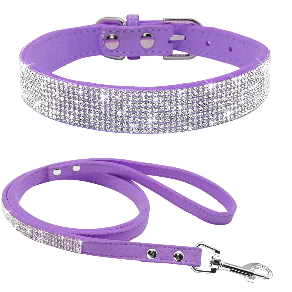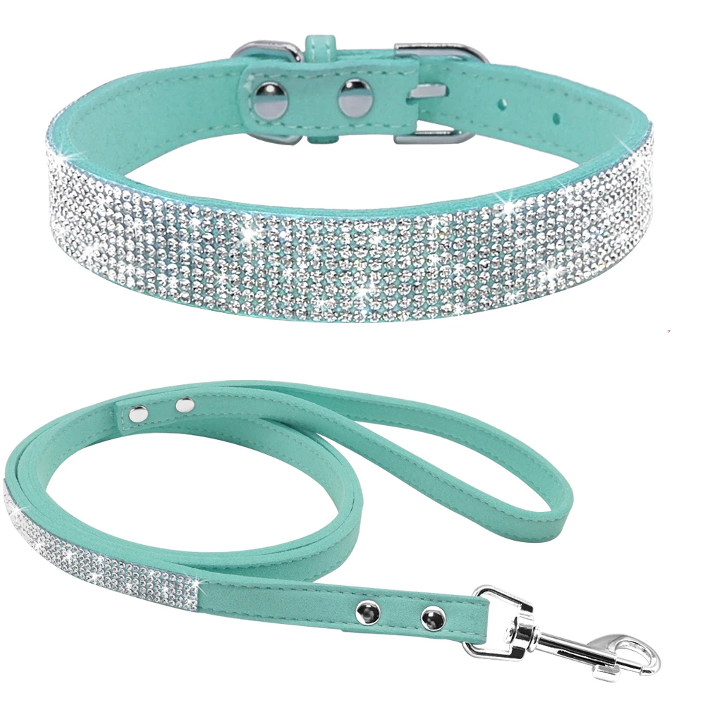 Collar de perro con diamantes de imitación, collares y correa de cristal ostentoso para perros y gatos, correa para caminar para mascotas, cordones ajustables para perros pequeños y medianos