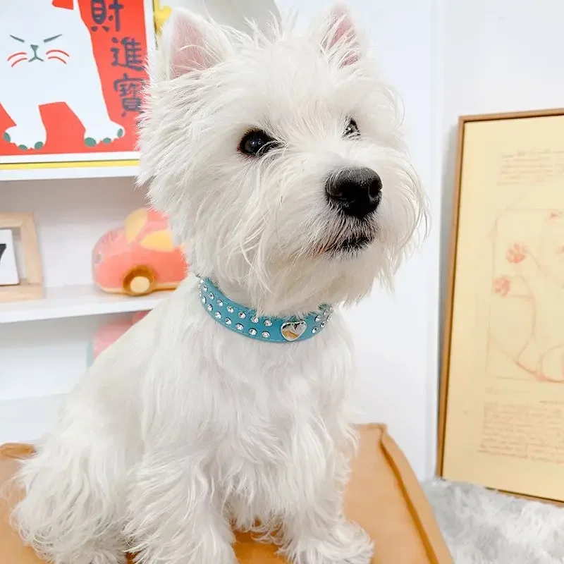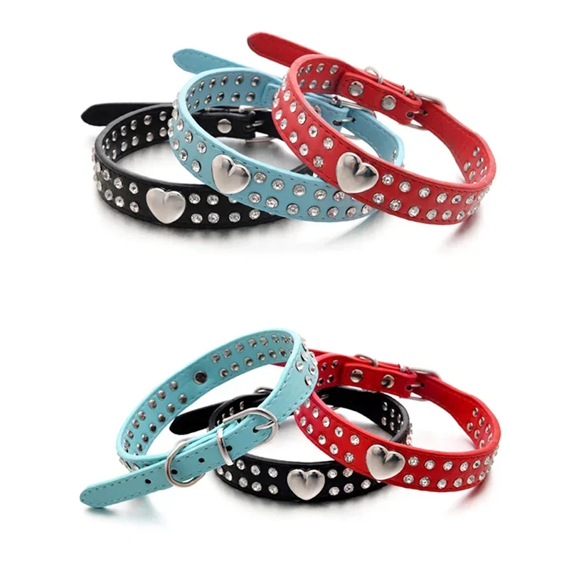 Collar de perro de moda amor corazón diamantes de imitación PU Collar de cuero Chihuahua Yorkie fiesta Collar gato aseo decorar regalo suministros para mascotas