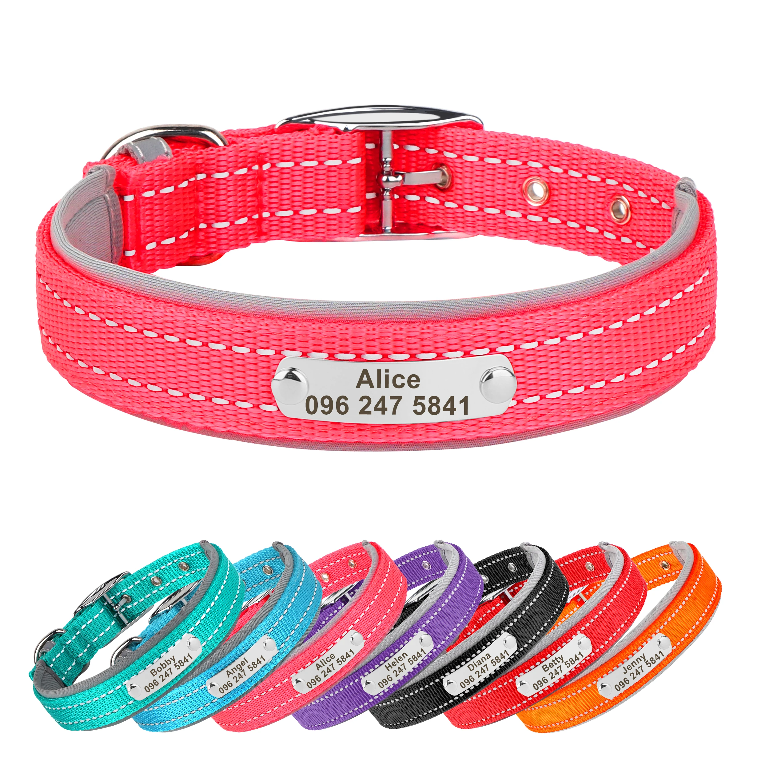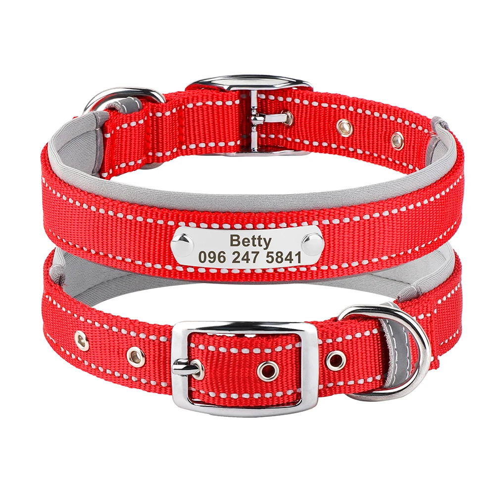 Collar de perro duradero reflectante personalizado gratis, collares de collar con nombre de identificación con grabado gratis, ajustables para perros pequeños, medianos y grandes Pitbulls