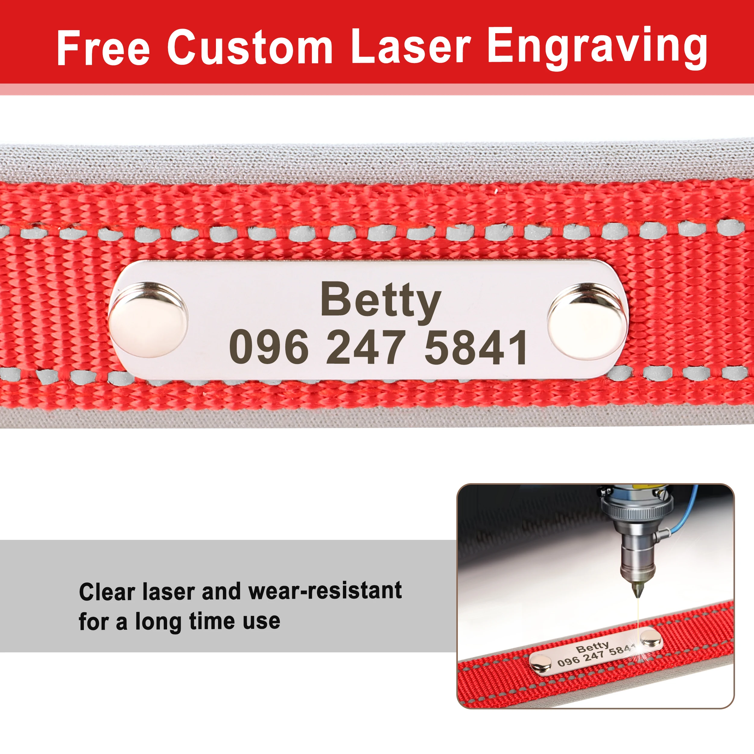 Servicio de grabado gratuito: nombre de la mascota * Dirección * Número de teléfono.