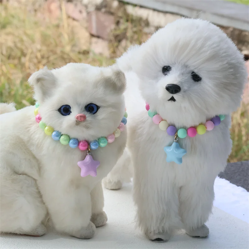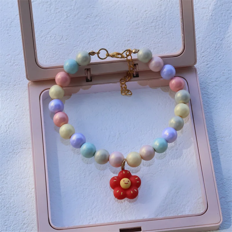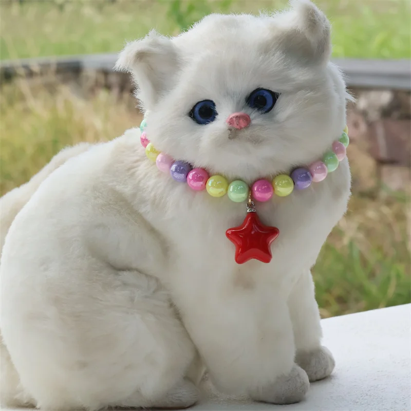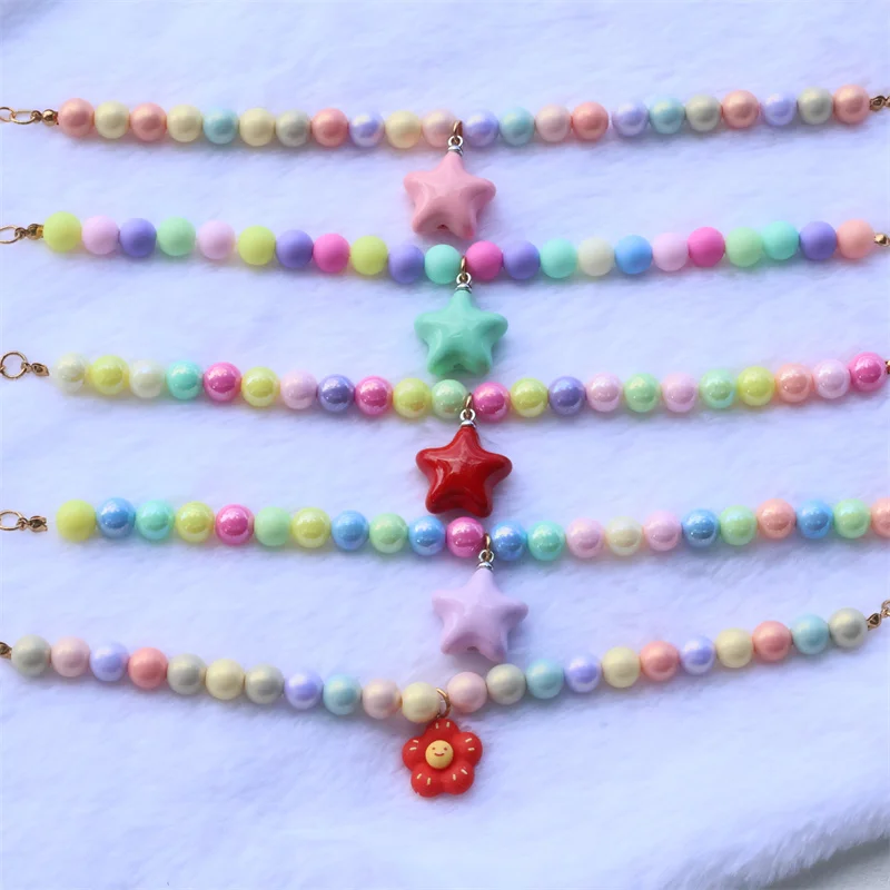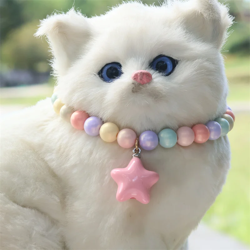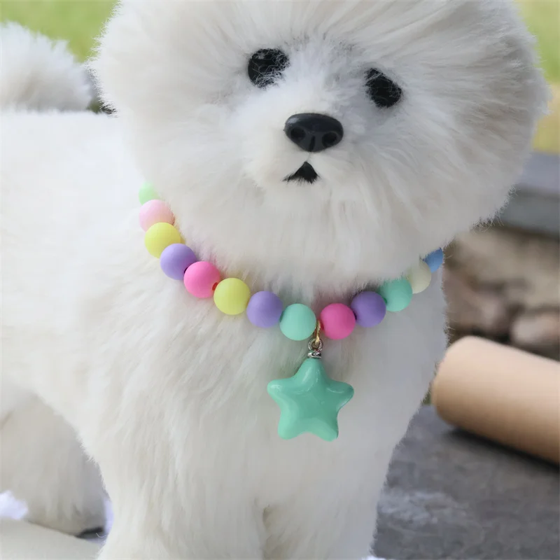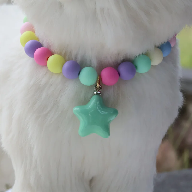 Collar de perro elástico hecho a mano, ajustable, con colgante de pentagrama de flor, cadena de cola de langosta de aleación, Collar para mascotas para gatos