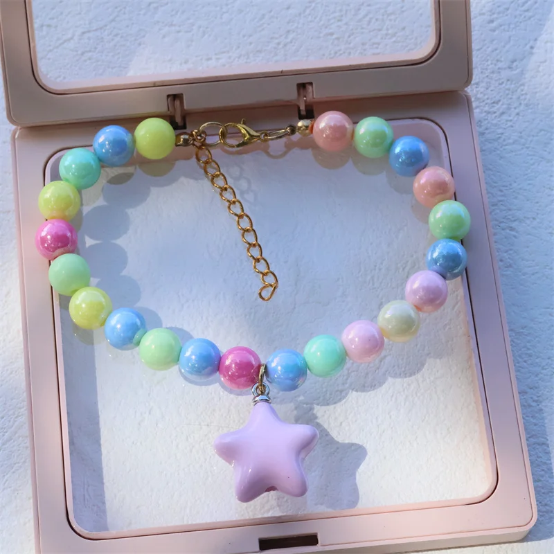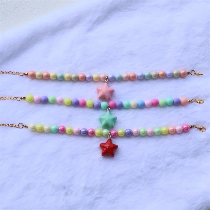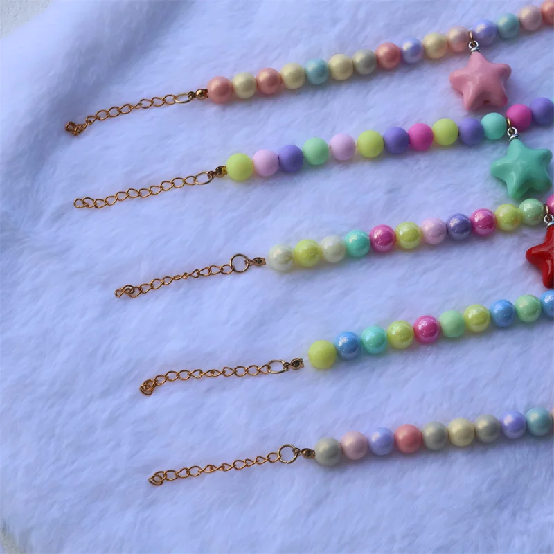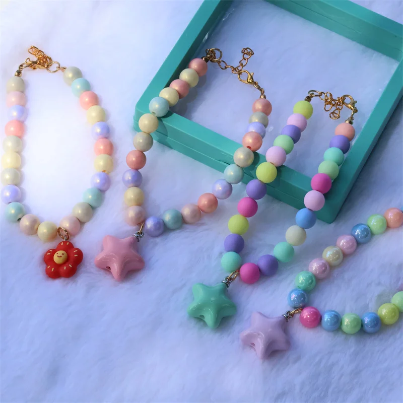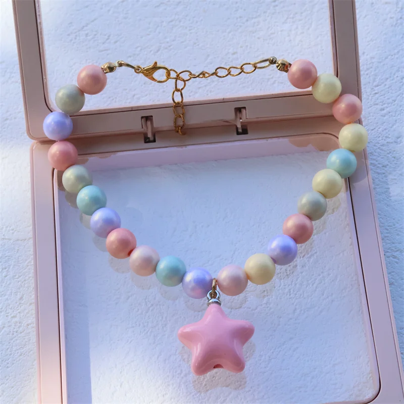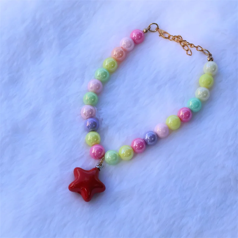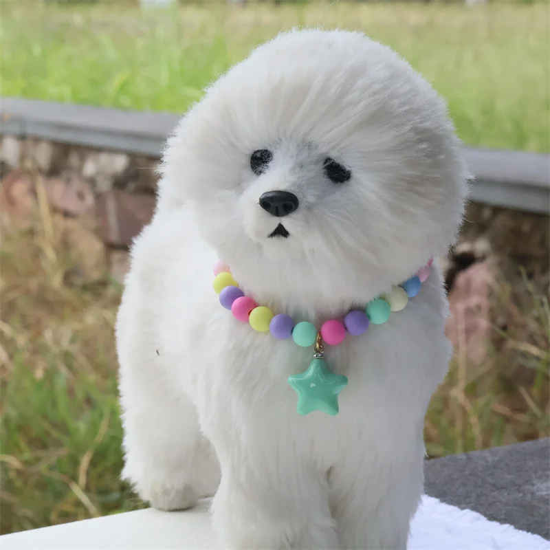 Collar de perro elástico hecho a mano, ajustable, con colgante de pentagrama de flor, cadena de cola de langosta de aleación, Collar para mascotas para gatos