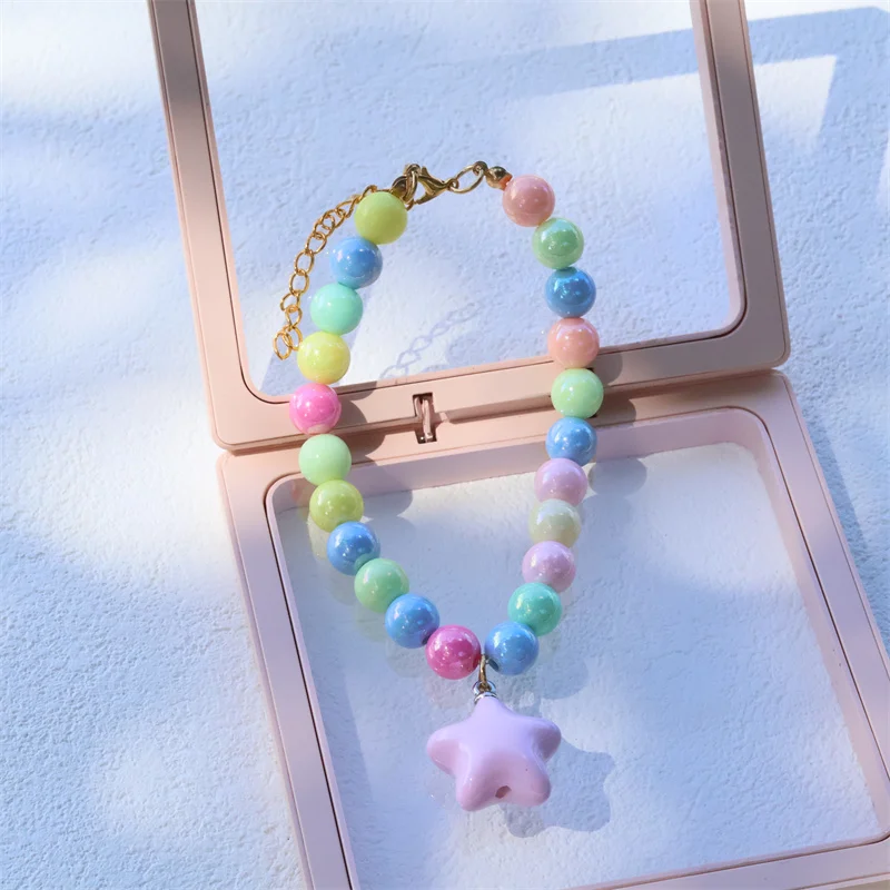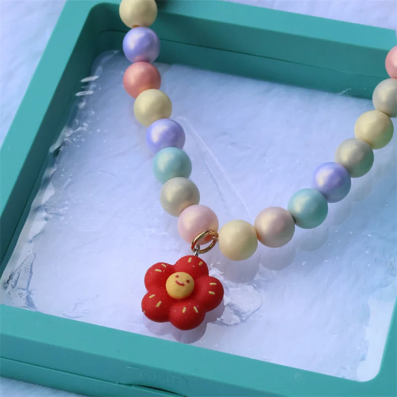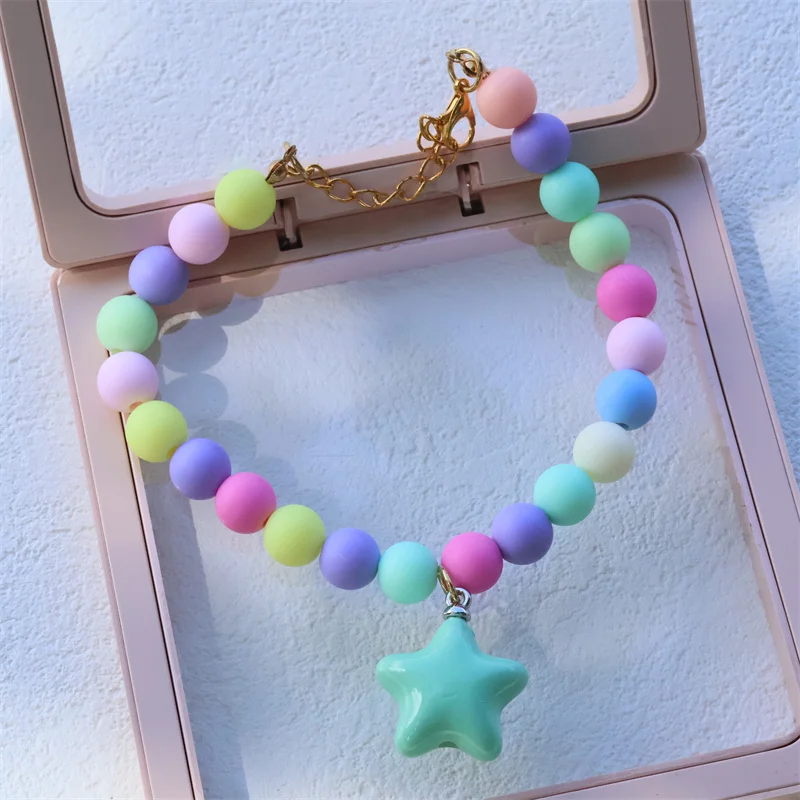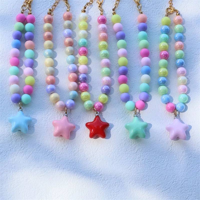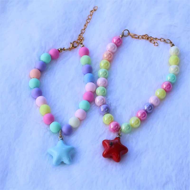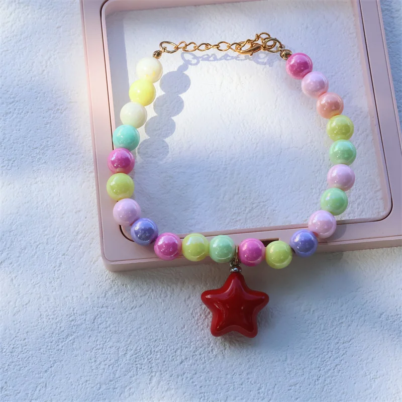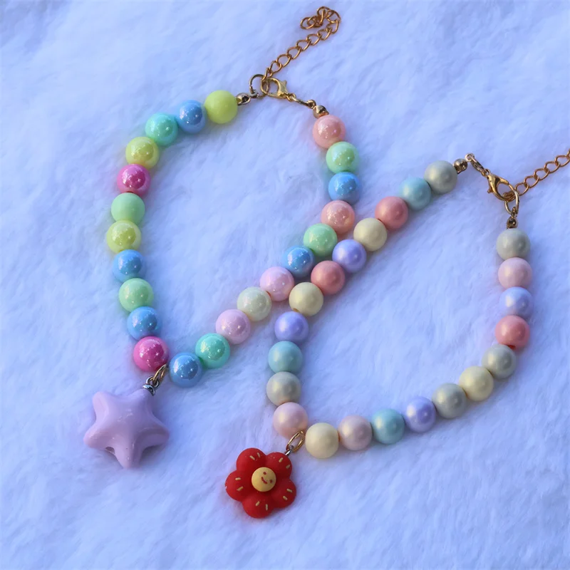 Collar de perro elástico hecho a mano, ajustable, con colgante de pentagrama de flor, cadena de cola de langosta de aleación, Collar para mascotas para gatos