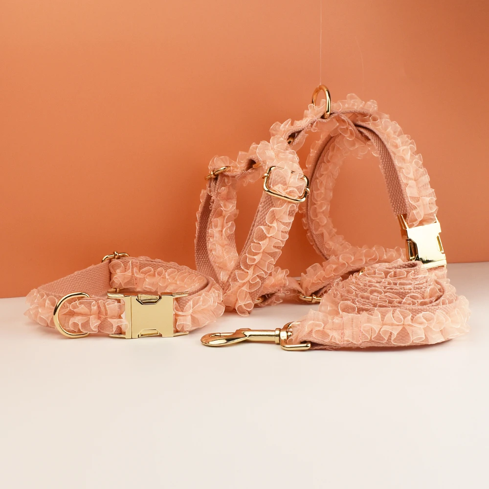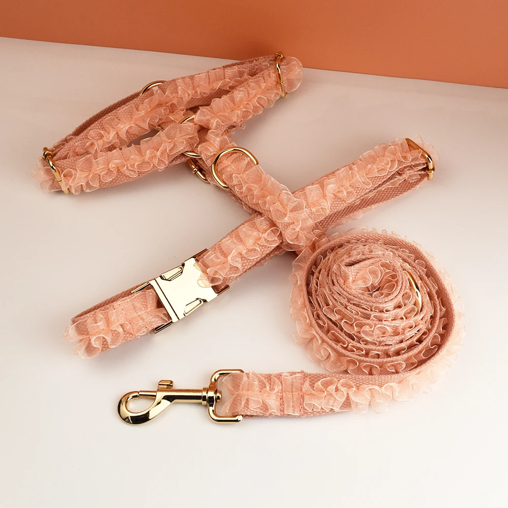 Collar de perro de encaje grabado personalizado, arnés de boda personalizado para mascotas, accesorios de lujo para perros, placa con nombre de encaje 03