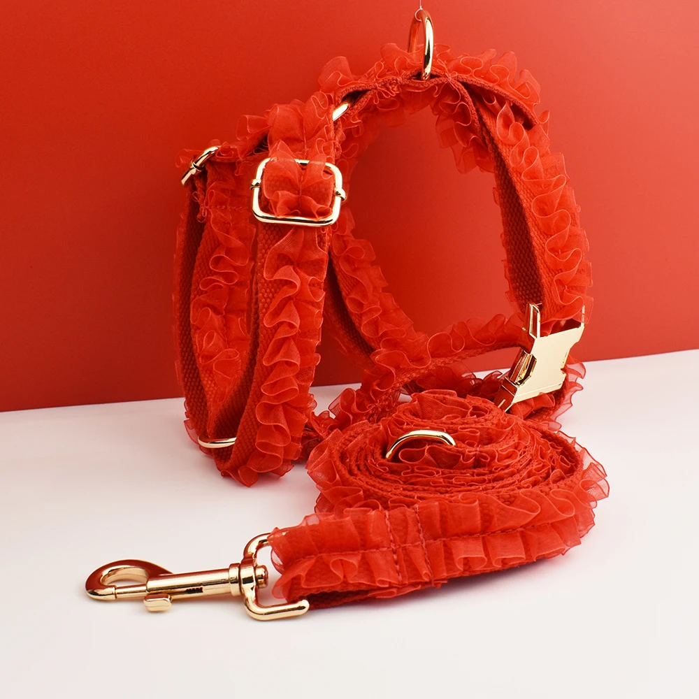 Collar de perro de encaje rojo grabado personalizado-Accesorios de lujo para perros PetHarness personalizados con placa de identificación para encaje de boda06 - imagen 1