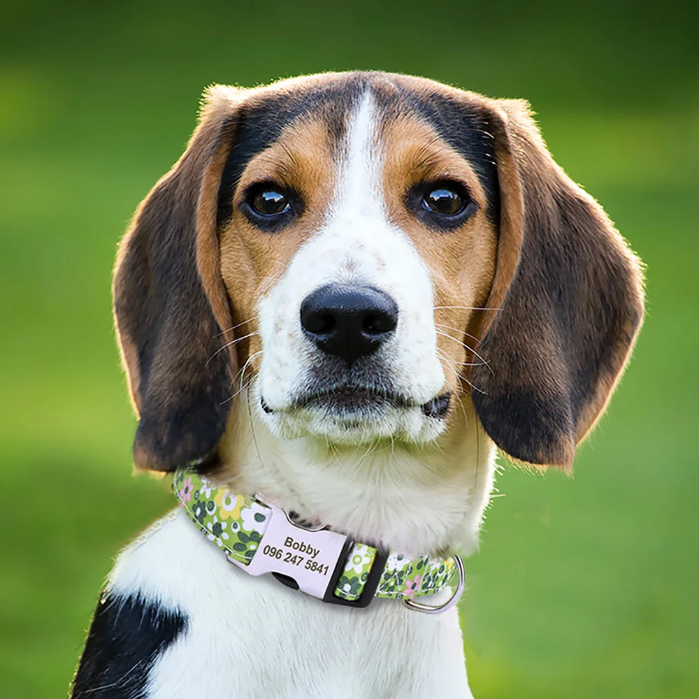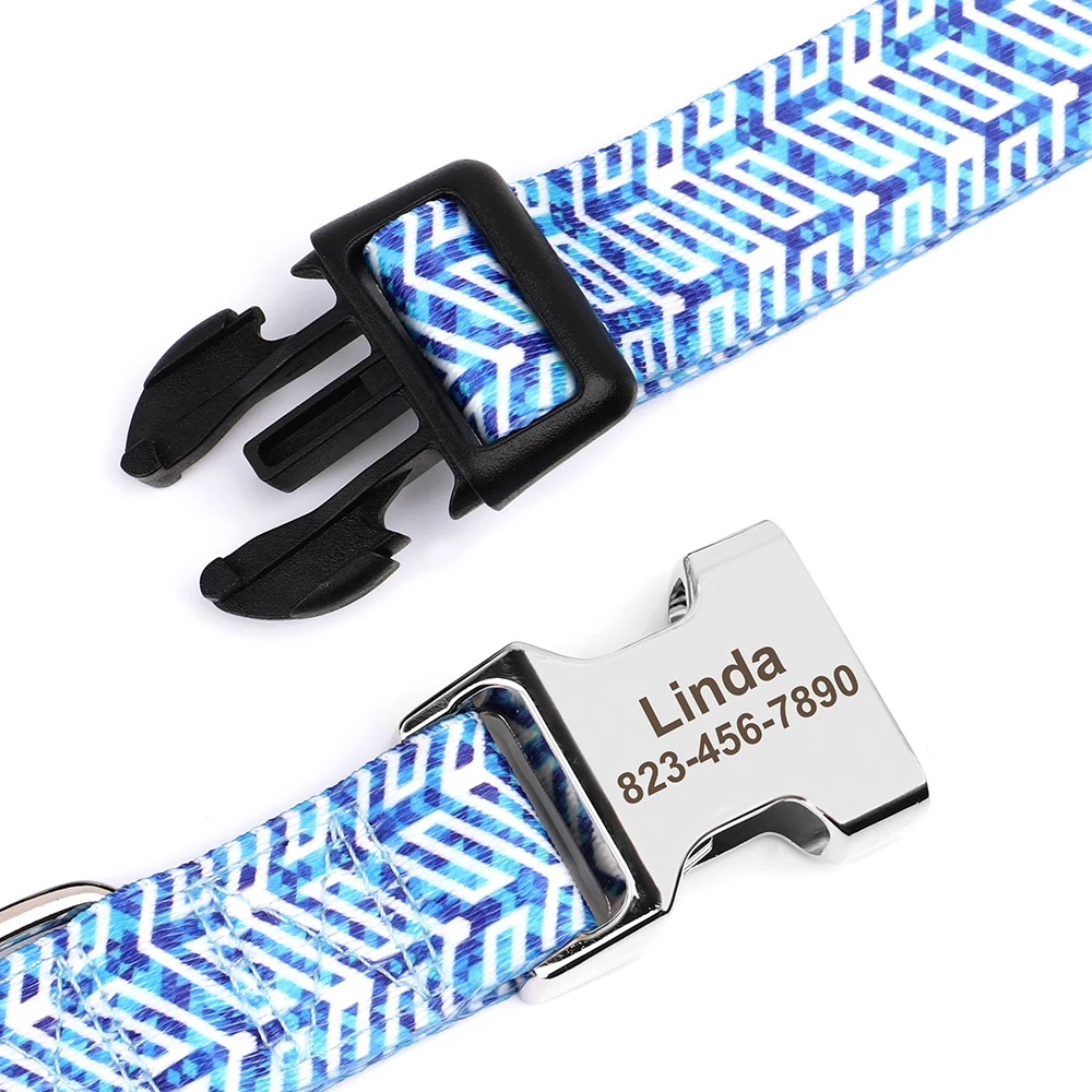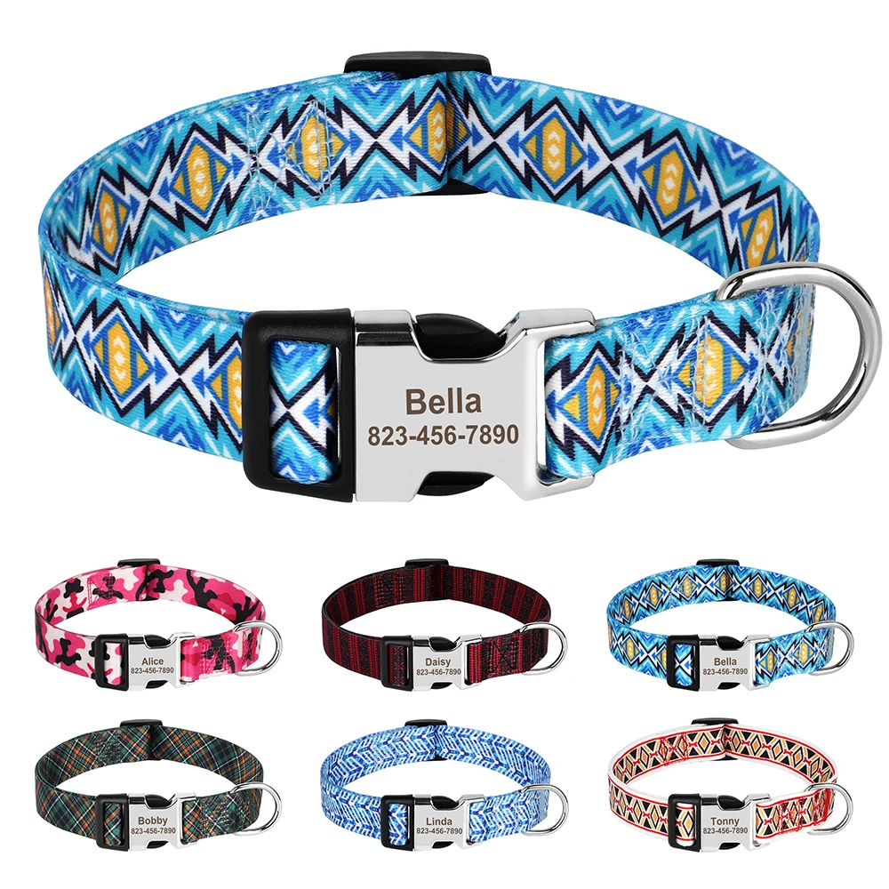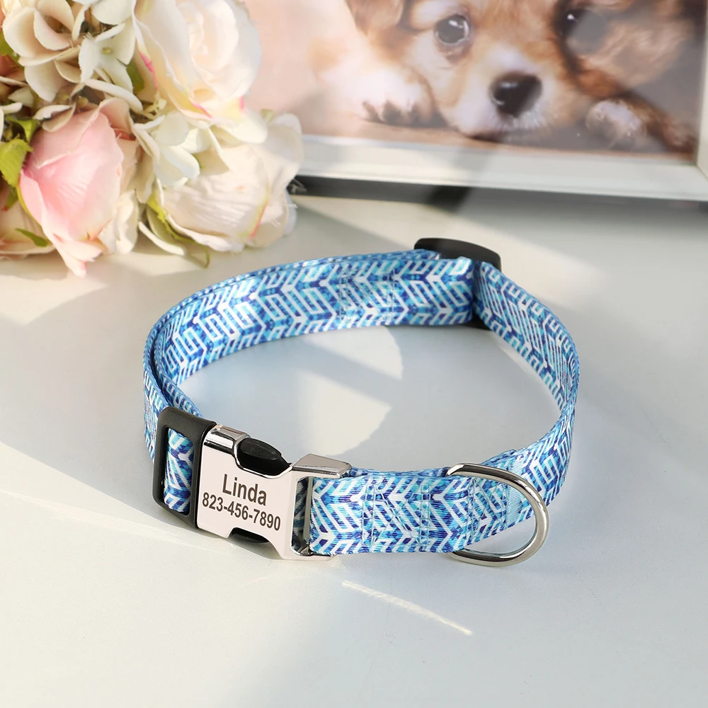 Collar de perro impreso de nailon, collares con nombre de perro personalizados, Collar con hebilla para mascotas, nombre de mascota grabado gratis, número de teléfono para perros