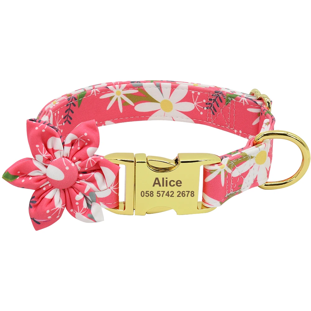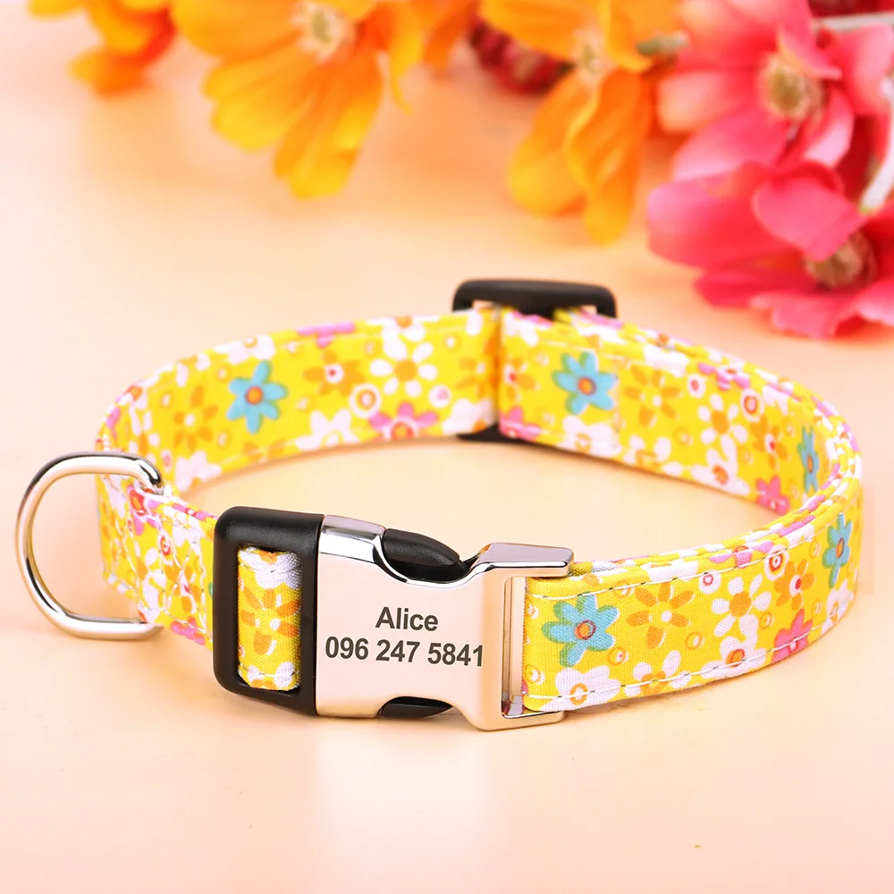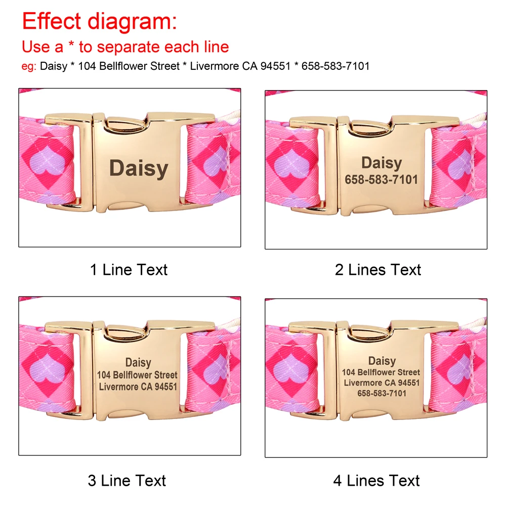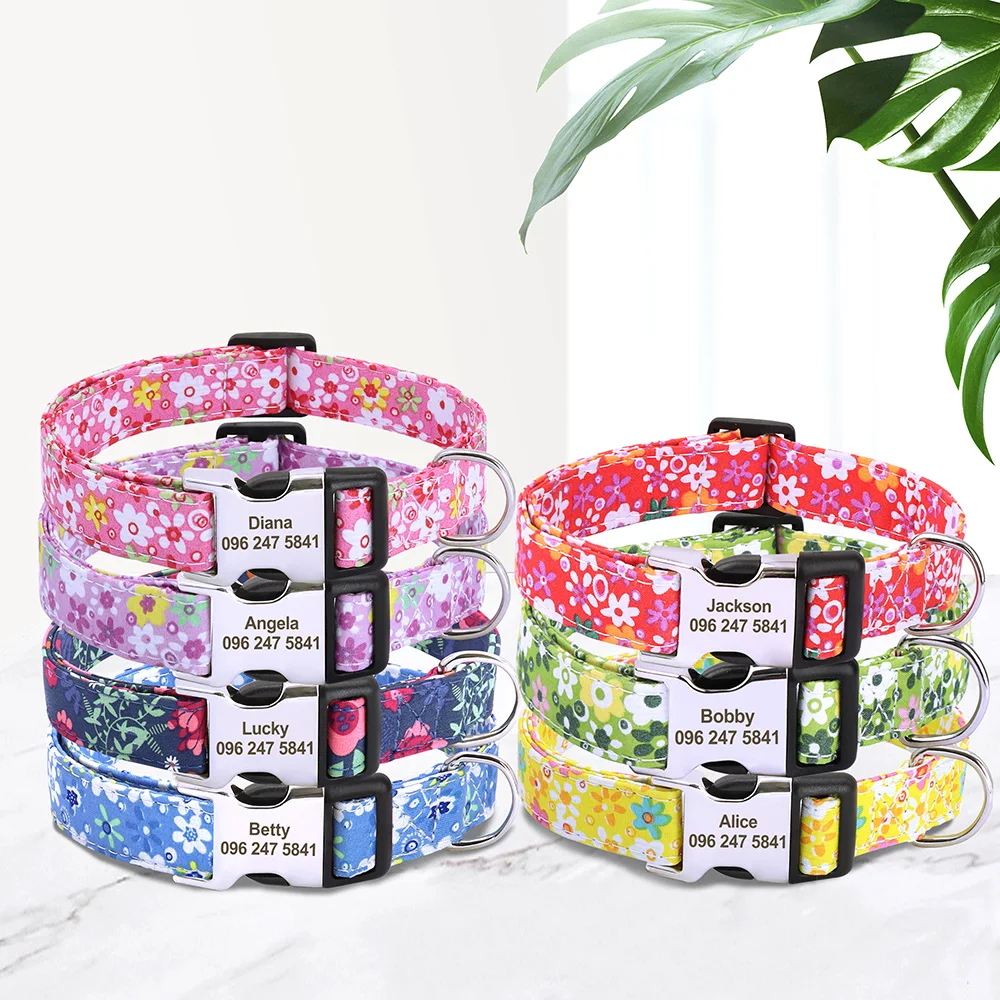 Collar de perro impreso de nailon, collares con nombre de perro personalizados, Collar con hebilla para mascotas, nombre de mascota grabado gratis, número de teléfono para perros