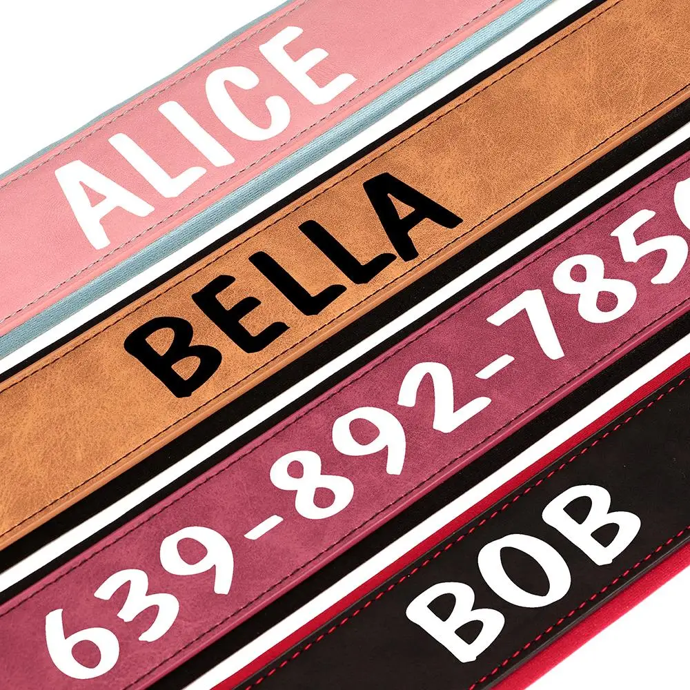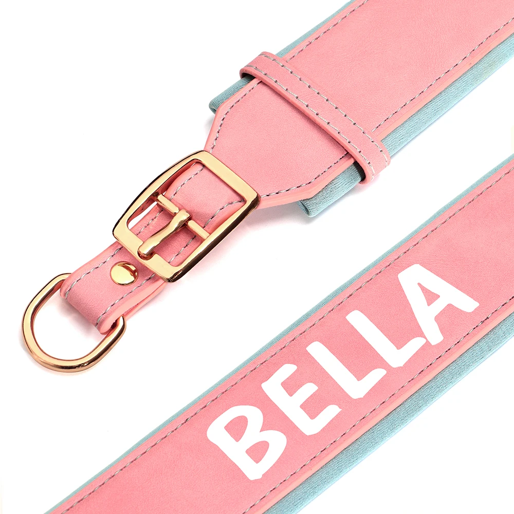 Collar de perro con estampado personalizado, collares anchos de cuero con nombre de perros, collares grandes y suaves acolchados para perros medianos y grandes, estampado gratis, rosa