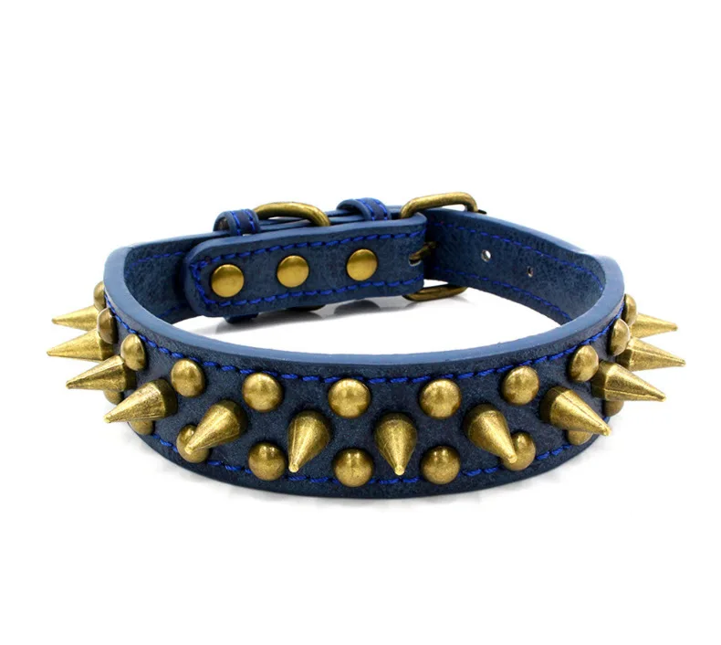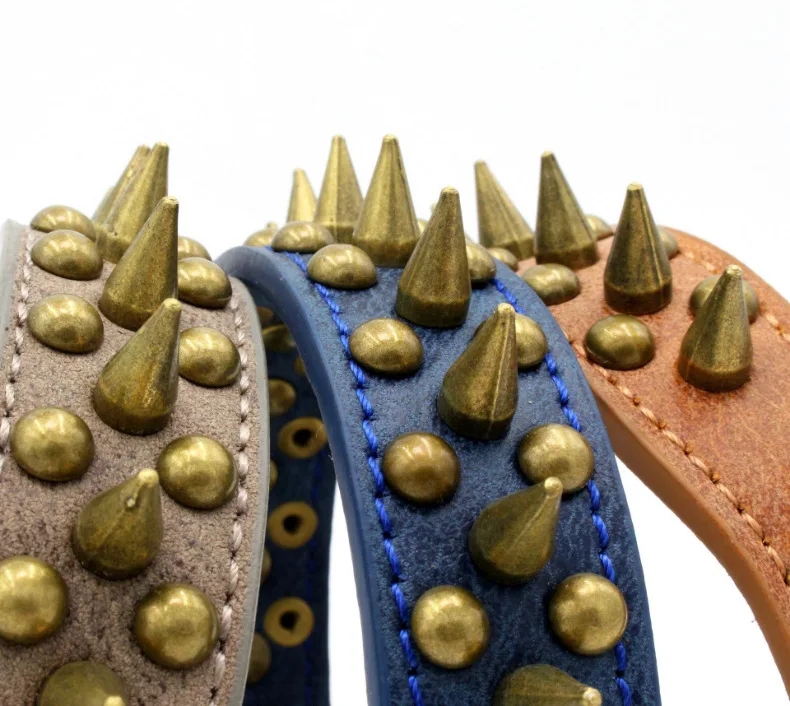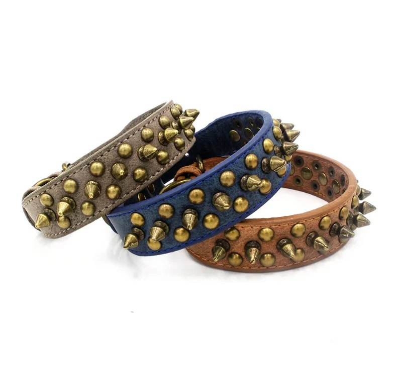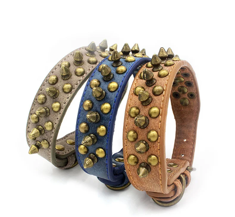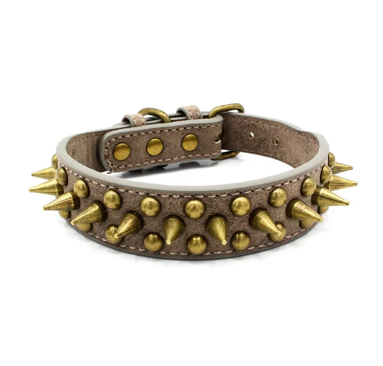 Collar de perro estilo punk con tachuelas de bala de bronce antiguo - Collar de cuero para mascotas a prueba de masticar con remaches para perros pequeños, medianos y grandes