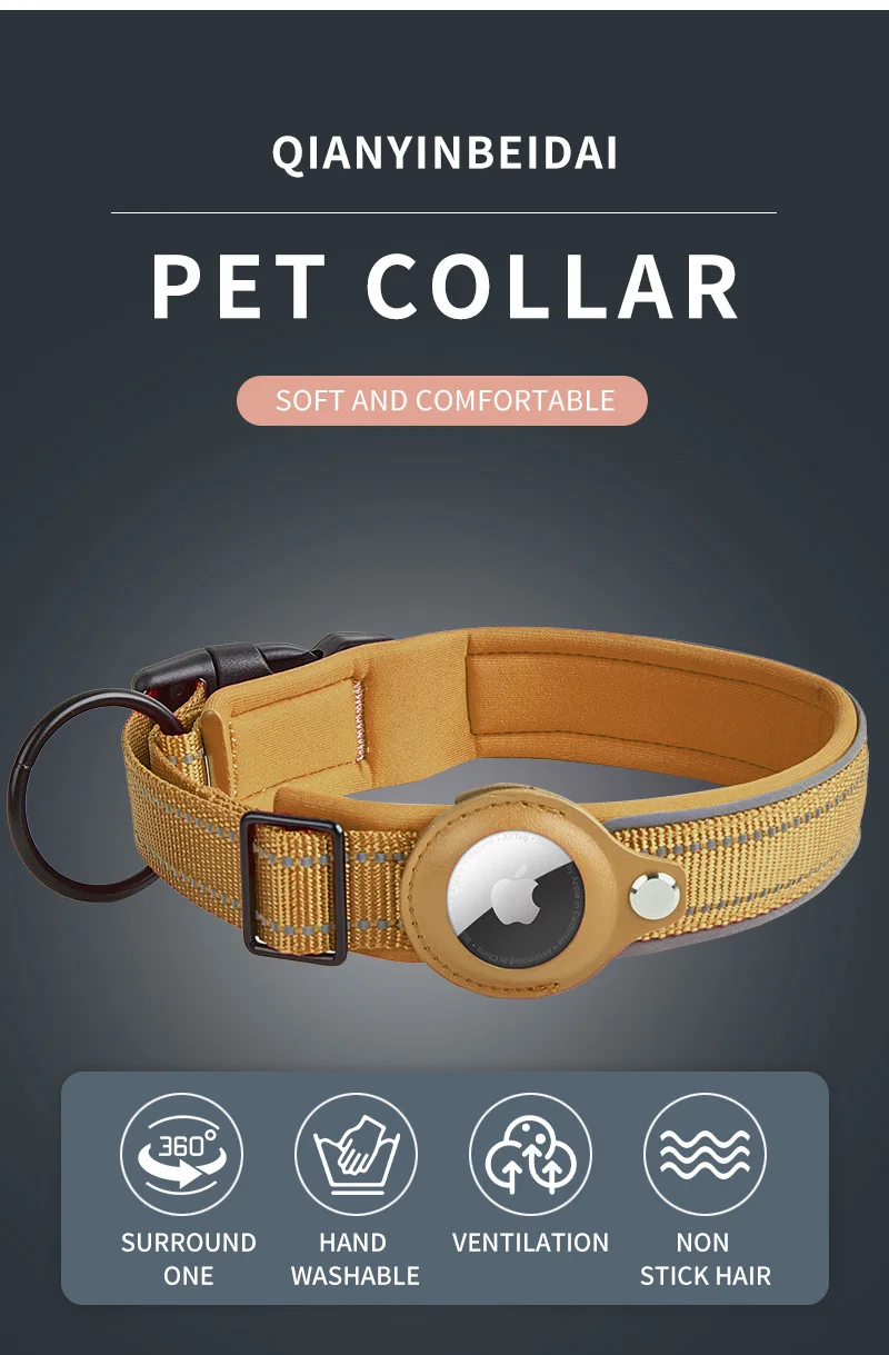 Collar de perro con etiqueta de aire reflectante, Collar de perro acolchado suave con funda cartuchera AirTag, accesorios de seguimiento GPS para perros pequeños, medianos y grandes