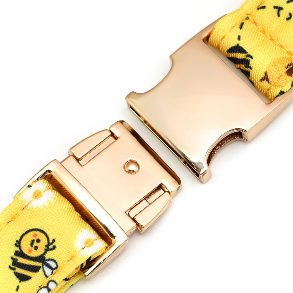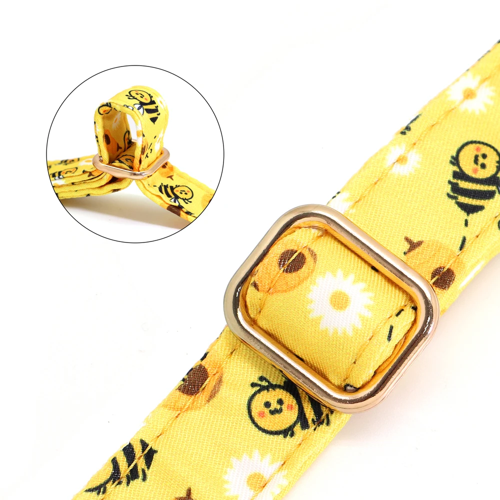 Collar de perro de flores de primavera, Collar ajustable de nailon para perro, hebilla de Metal, estampado de abeja de flores para perros pequeños, medianos y grandes, S M L