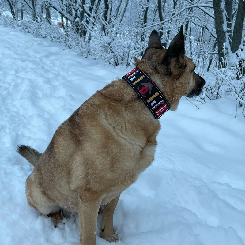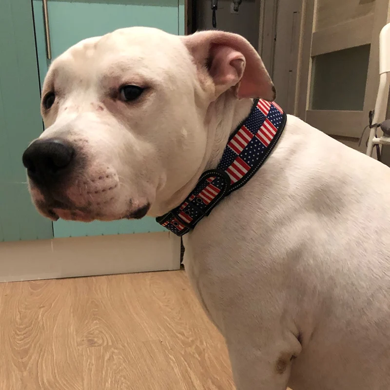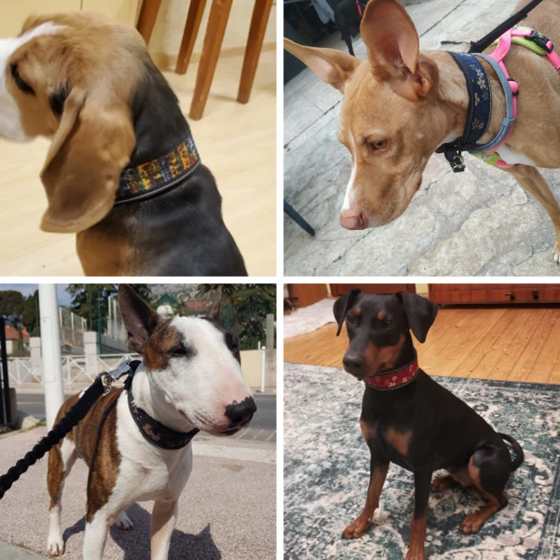 El collar es hermoso, de buena calidad. bastante denso, por lo que el perro puede sentirse caliente en él. pero debido a la calidad, la presión en el cuello disminuye cuando el perro pone fuerza. llegó rápidamente