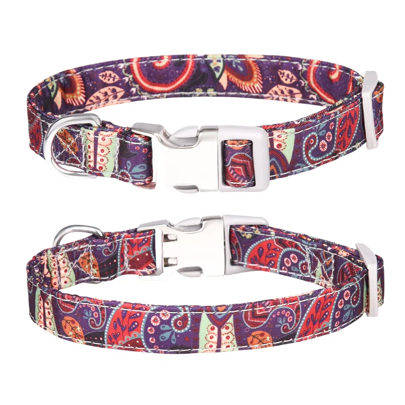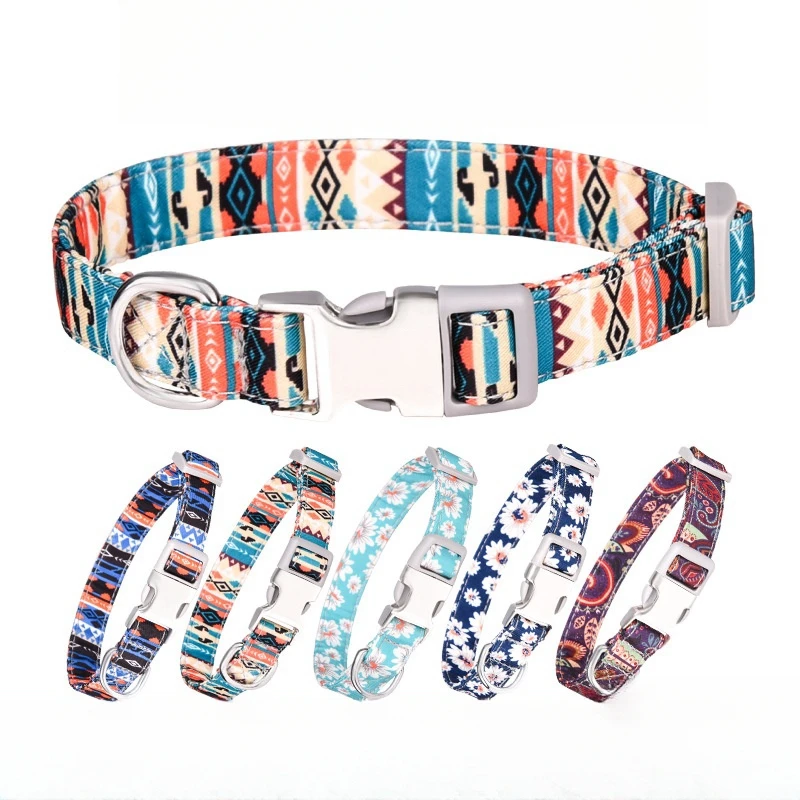 Collar de perro con hebilla de Metal, estampado colorido, doble correa, Collar de perro de tela ajustable, suave y duradero para mascotas medianas y grandes