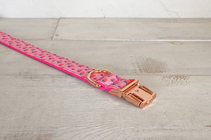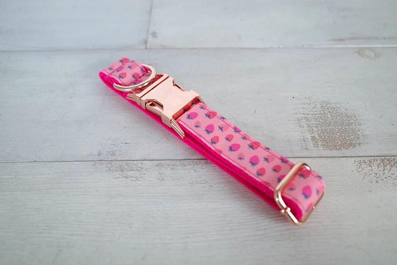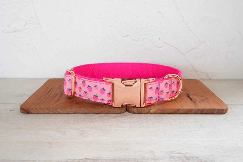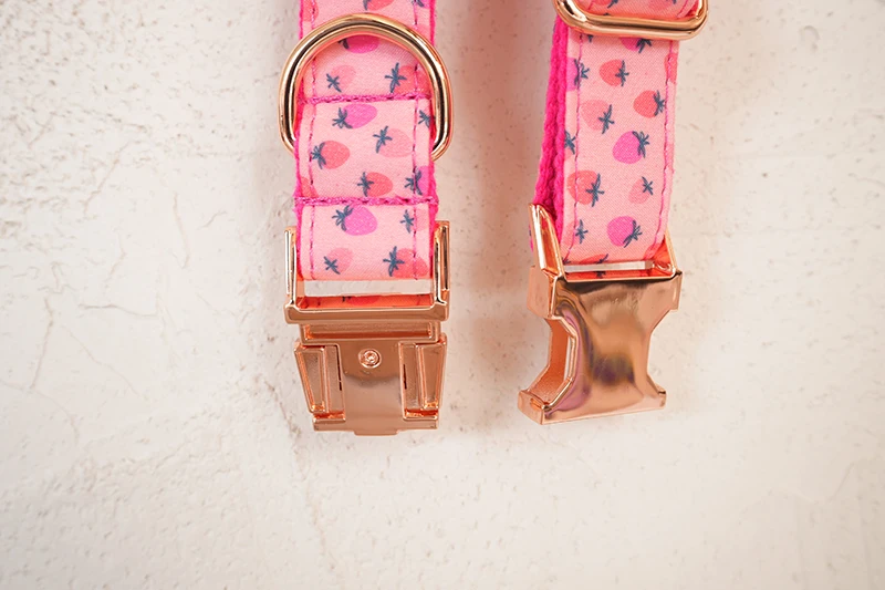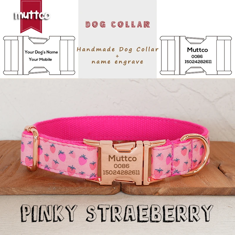 MUTTCO collar de perro con hebilla de metal grabada PINKY STRAWBERRY collar de etiqueta de identificación de perro personalizado 5 tamaños placa de identificación antipérdida mascota UDC186