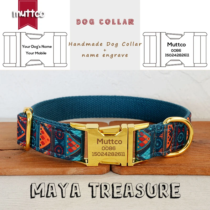 Collar de perro con hebilla de metal grabado MUTTCO Maya Treasure collar de etiqueta de identificación de perro personalizado 5 tamaños placa de identificación mascota antipérdida UDC196