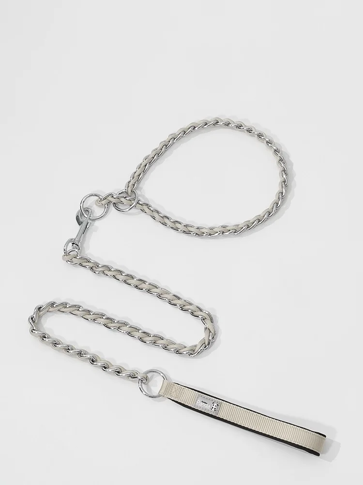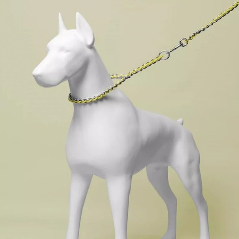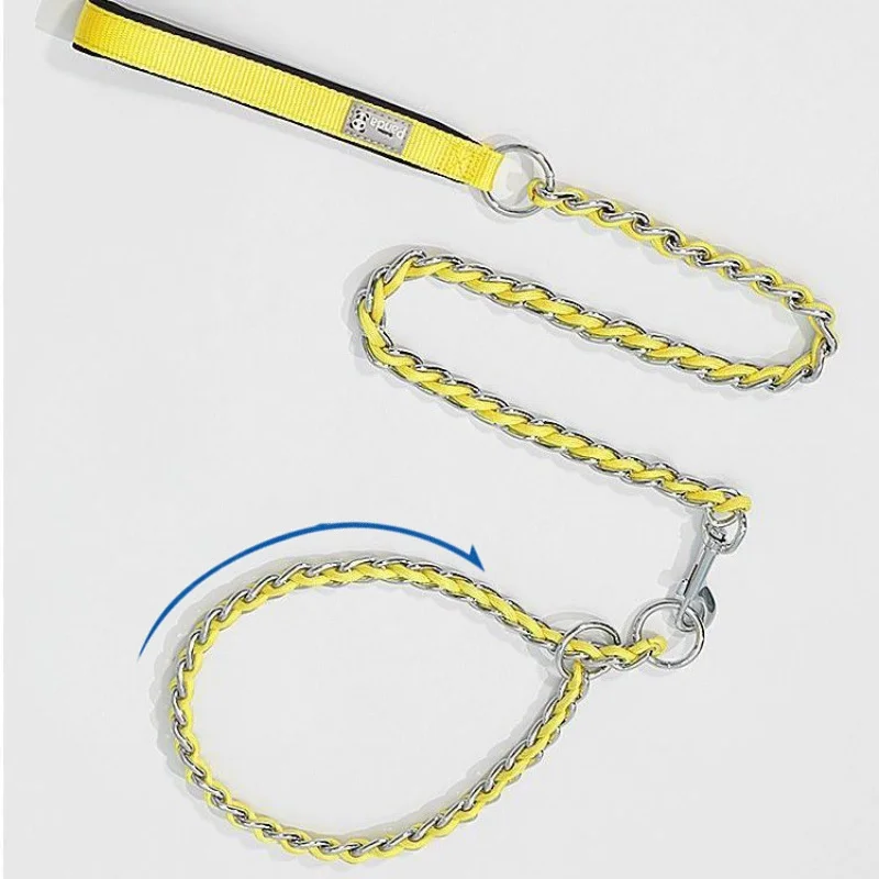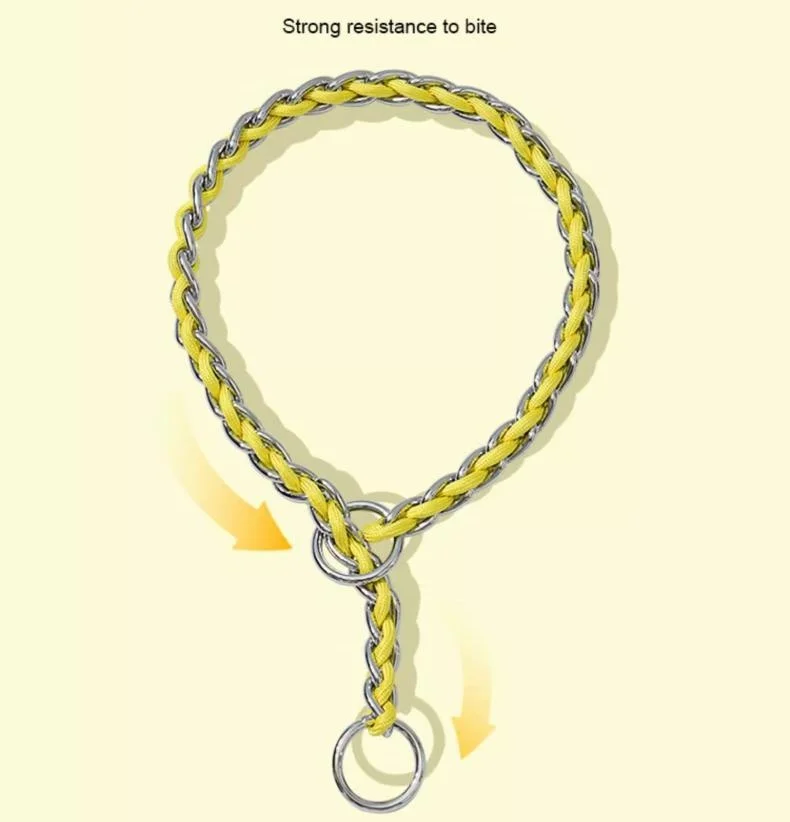 Collar para perro con juego de correa, macramé ajustable para mascotas, Collar P, correa trenzada para perro, cadena de acero, collares de estrangulación de entrenamiento, cadena Slip P