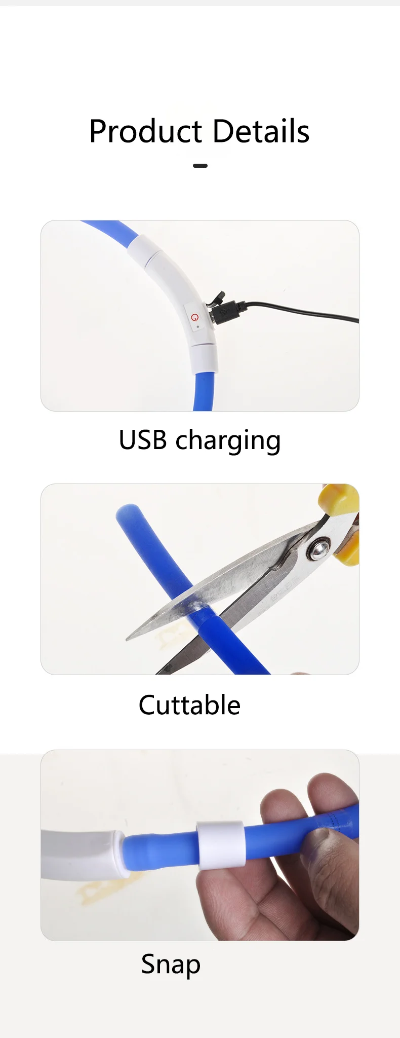 �� EASY TO USE: With just one click, you can change 3 lighting modes between static lighting, fast flash and slow fash; Fully adjustable makes light up dog collar fit any size of pet.