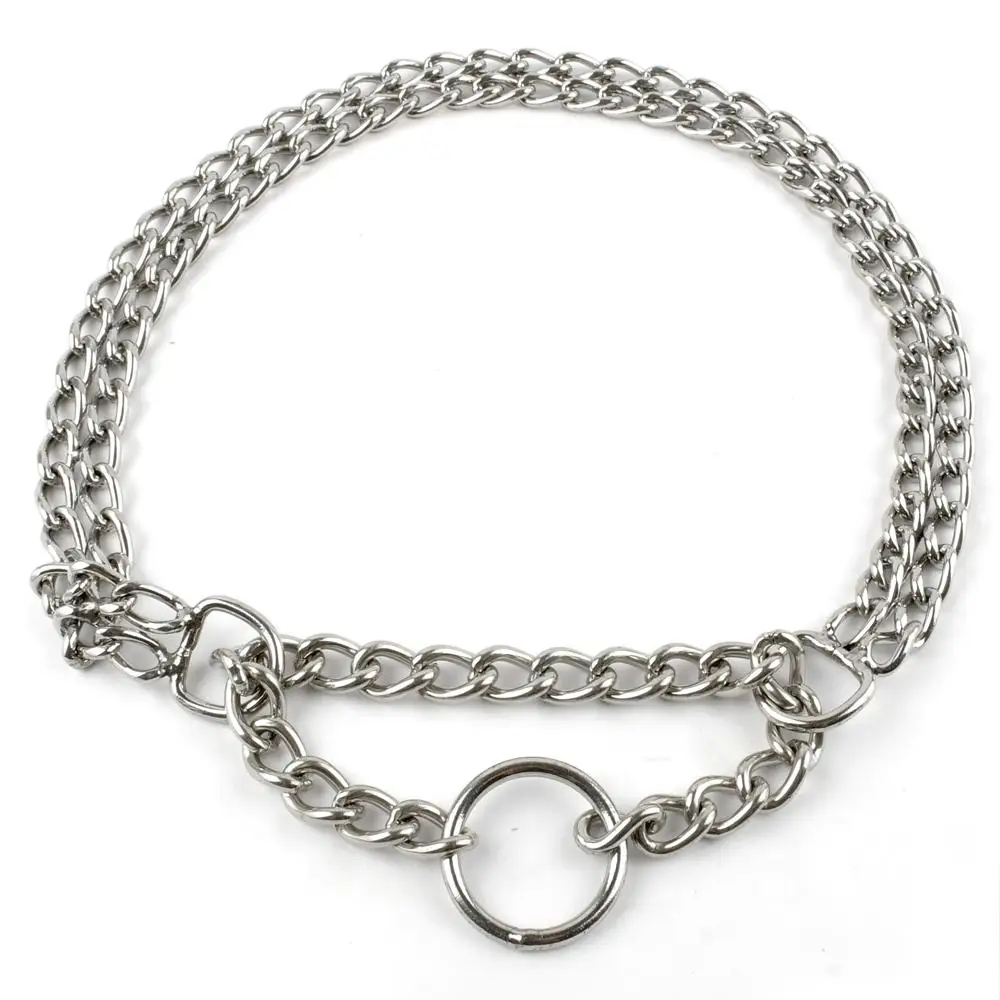 Collar de perro Martingale de acero inoxidable, cadena de Metal, doble fila, Gargantilla cromada, Collar de espectáculo de entrenamiento, Control de seguridad ajustable