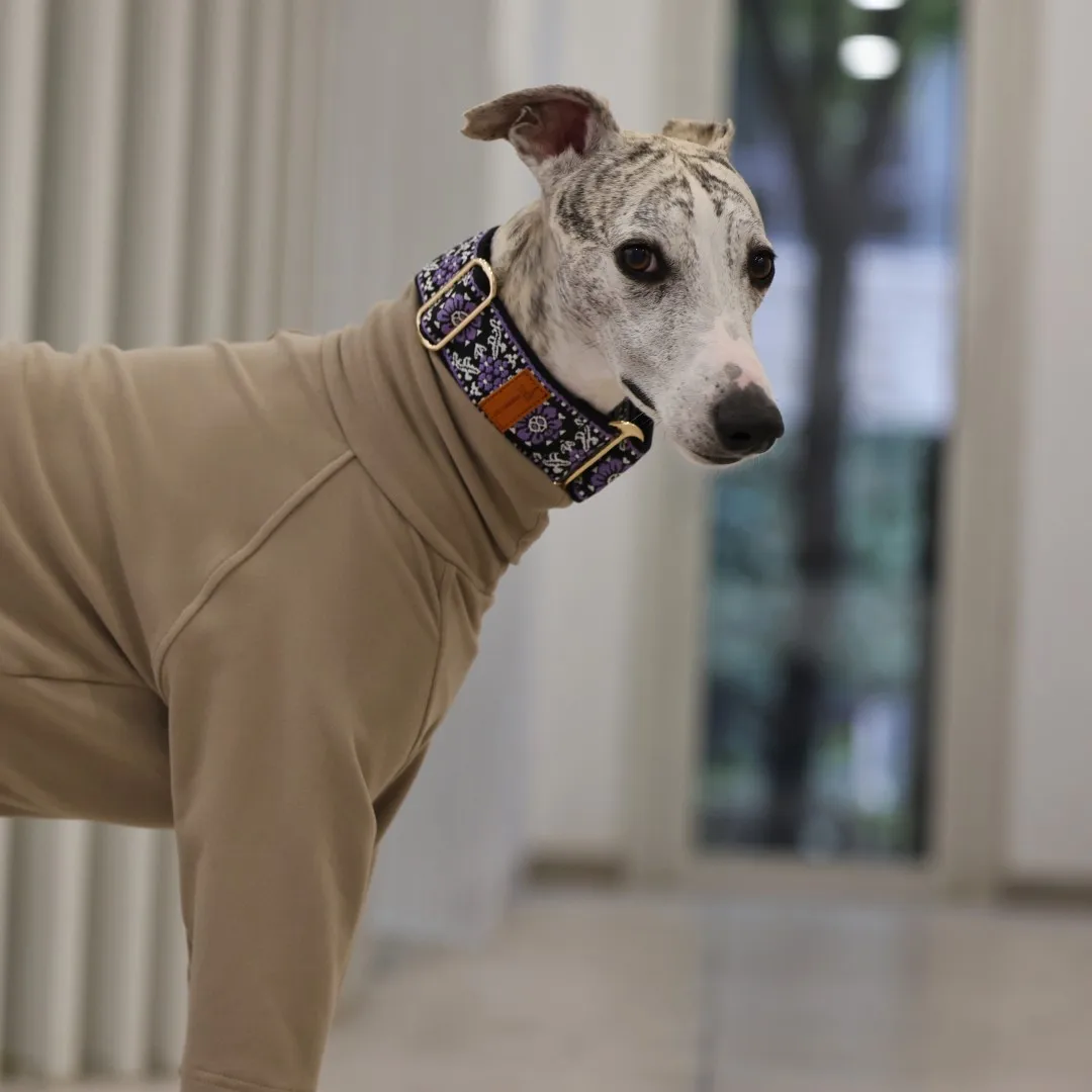 La talla M le queda muy bien a nuestro galgo mezclado. Alta calidad.