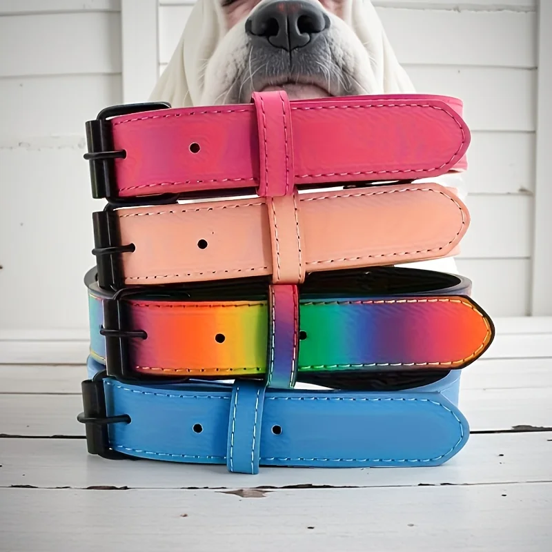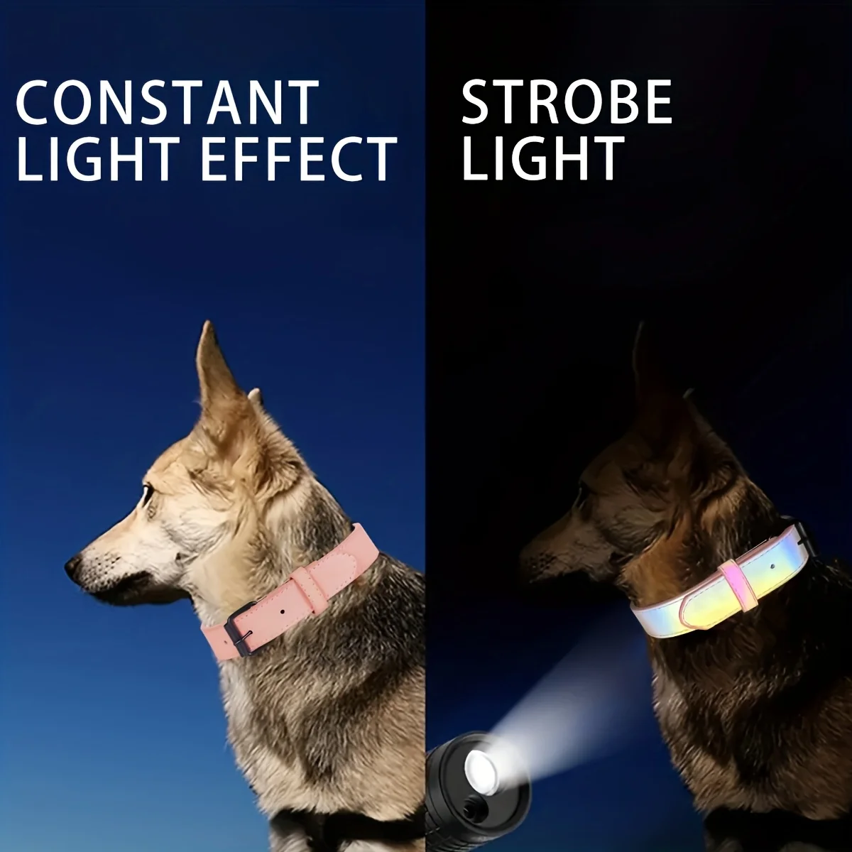 Collar para perro mascota con diseño colorido reflectante nocturno, doble capa, anti estrangulador, ajustable, disponible en varios colores y tamaños, 1 ud.