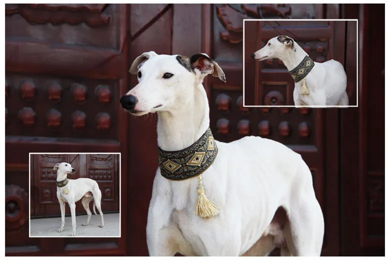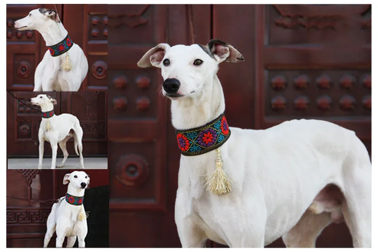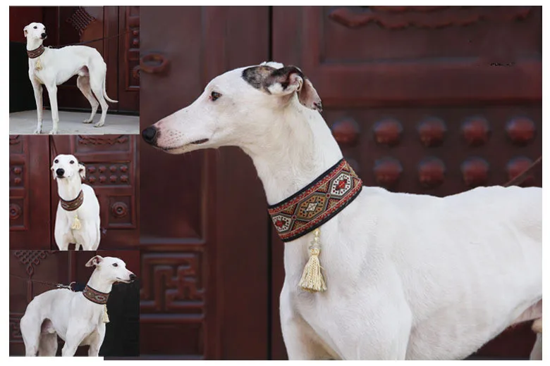 Collar para perro de material de piel de oveja, Collar para perro grande, mediano y pequeño, Collar de cuero étnico para perro pequeño y arenoso gris