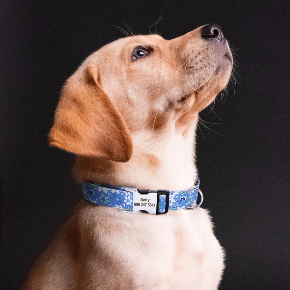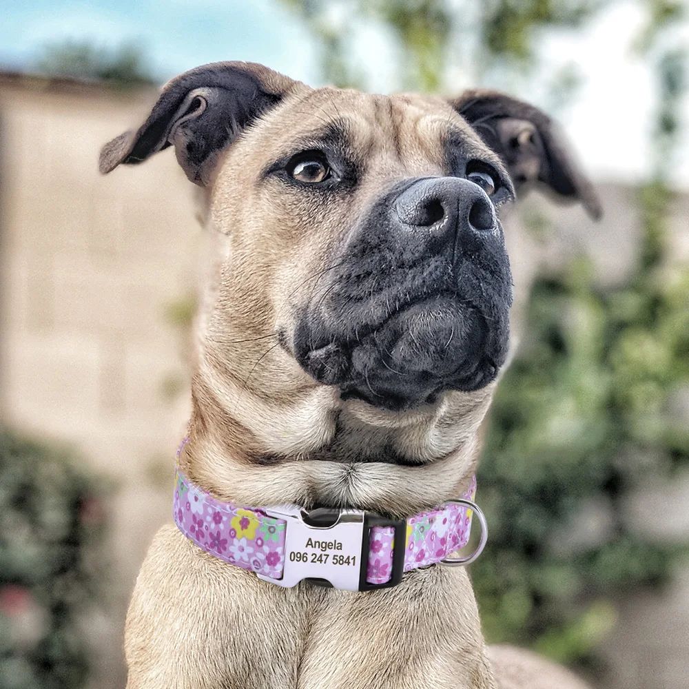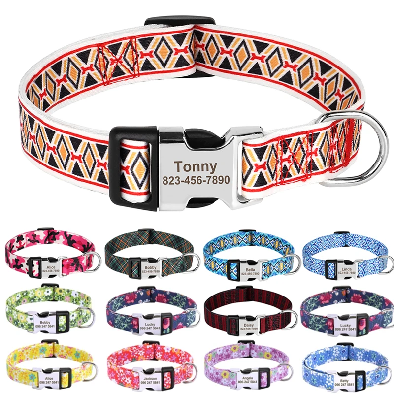 Tipo: Collar de perro de moda personalizado, collares de nailon con estampado de flores para cachorros, collares de identificación personalizados para perros pequeños, medianos y grandes, Chihuahua