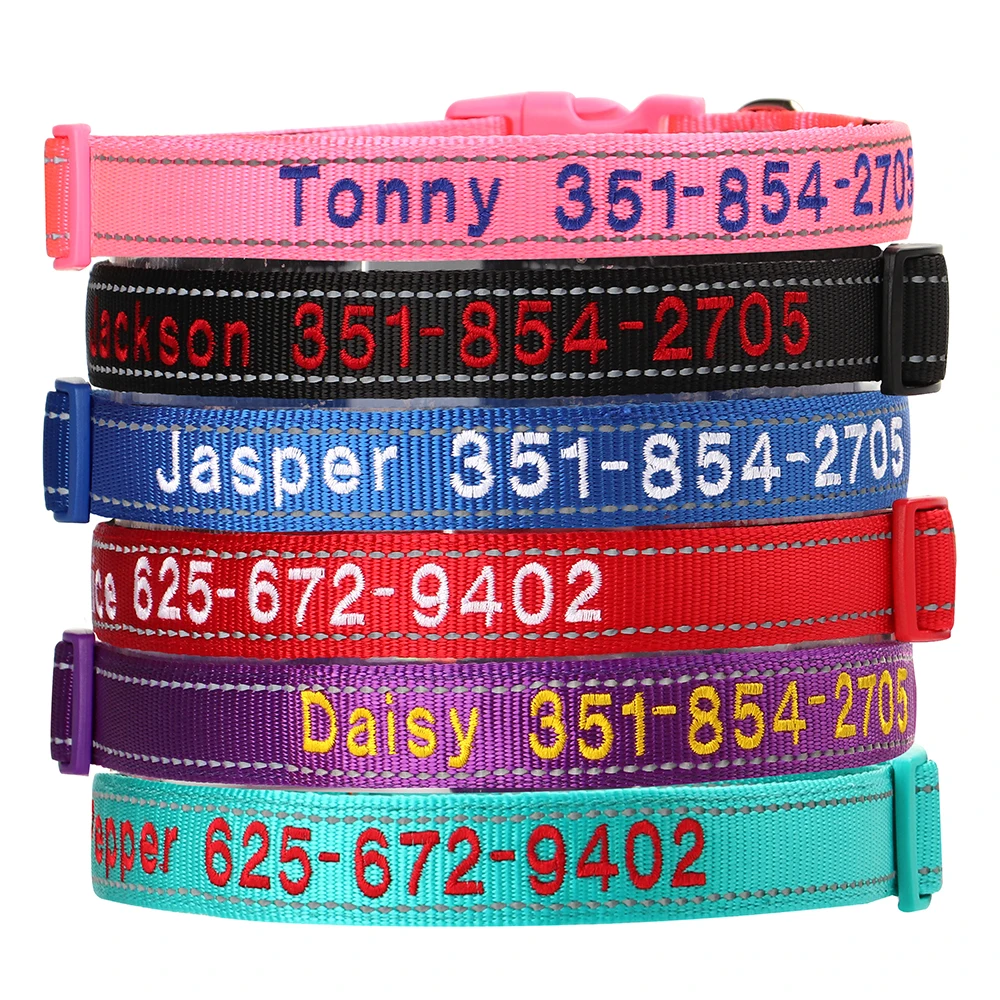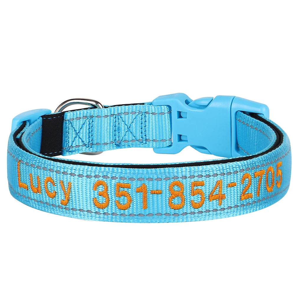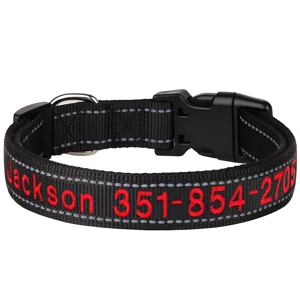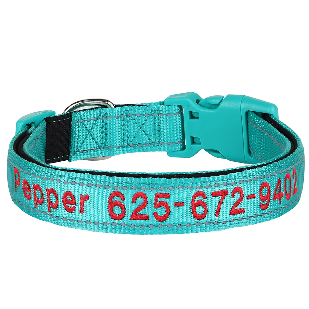 Collar de perro de nailon bordado Collar de perro personalizado gratis Nombre de identificación de mascota reflectante Número de teléfono Para perros pequeños medianos grandes Pug ajustable