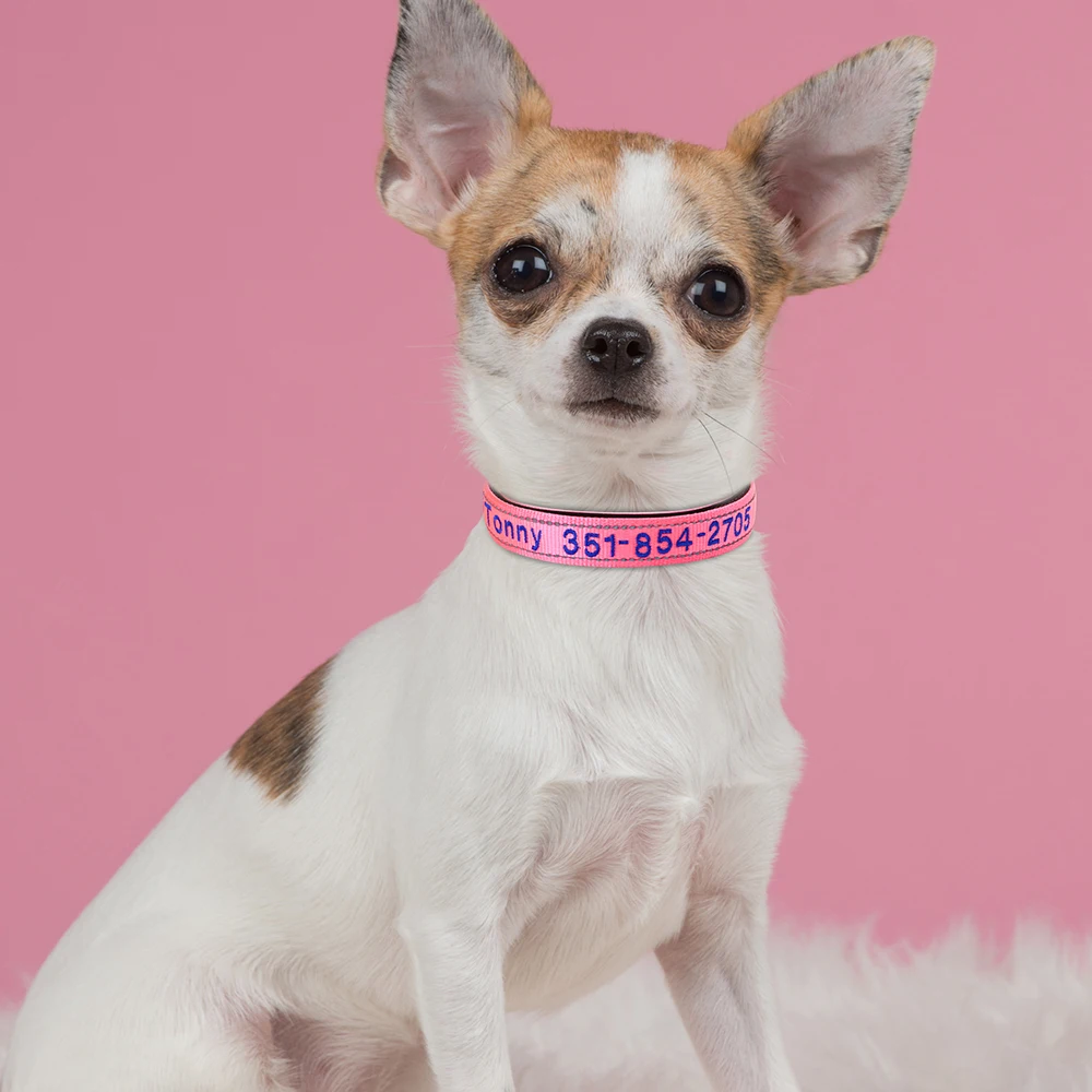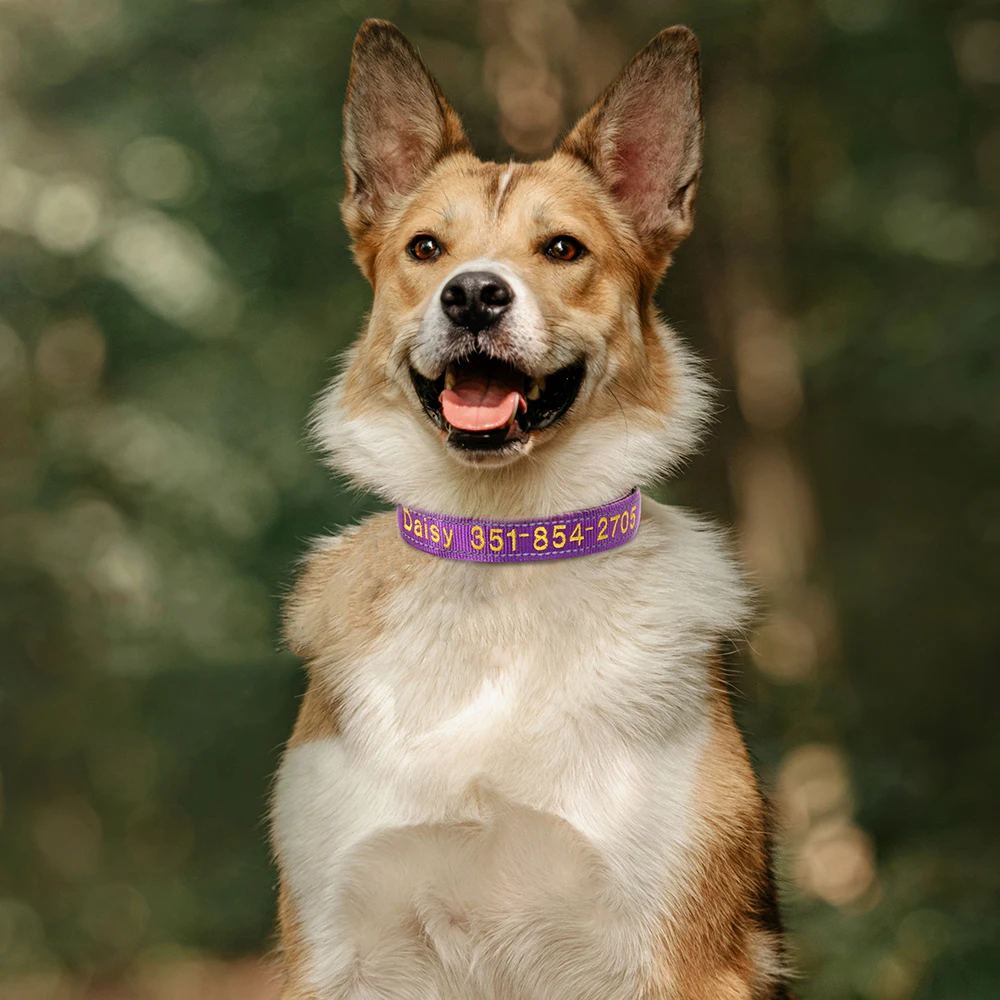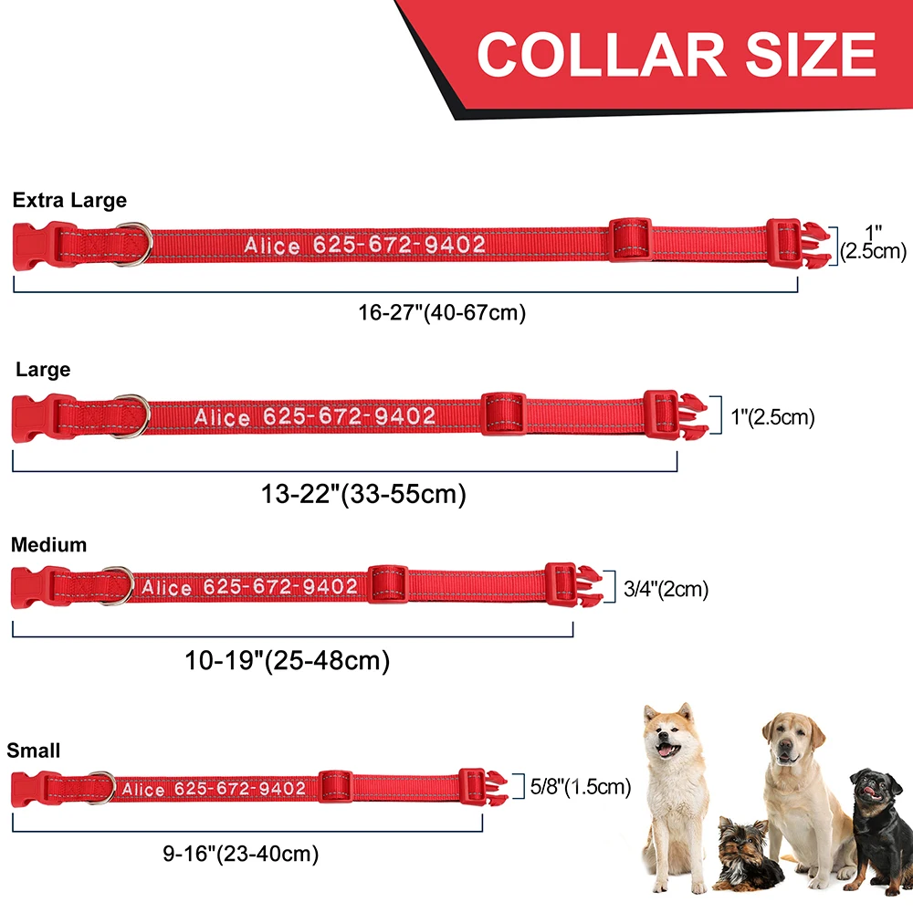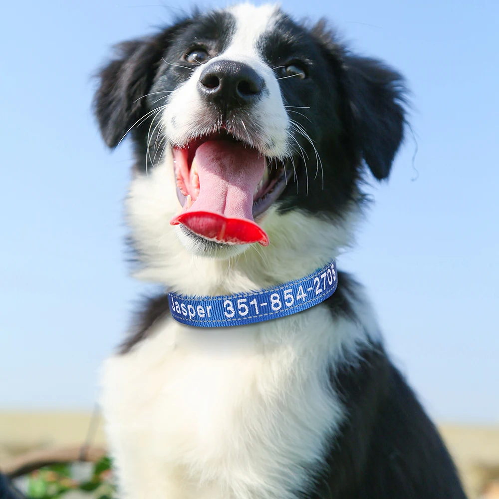 Collar de perro de nailon bordado Collar de perro personalizado gratis Nombre de identificación de mascota reflectante Número de teléfono Para perros pequeños medianos grandes Pug ajustable