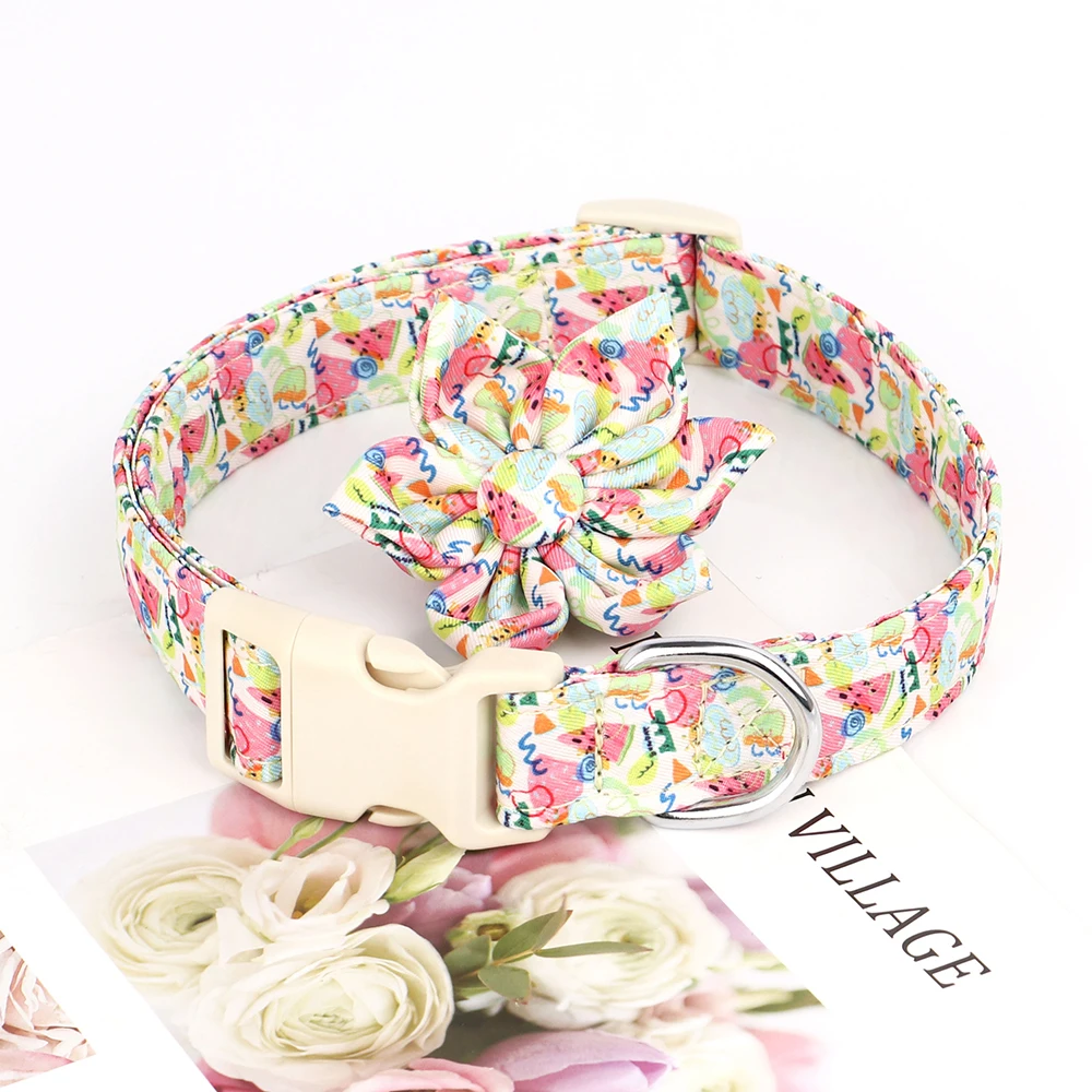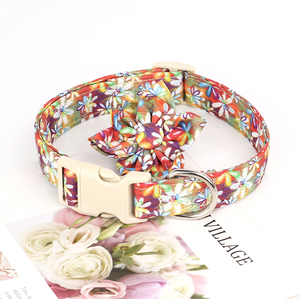 Collar de perro de nailon con estampado de moda, accesorios florales, collares ajustables para perros pequeños, medianos y grandes, Chihuahua