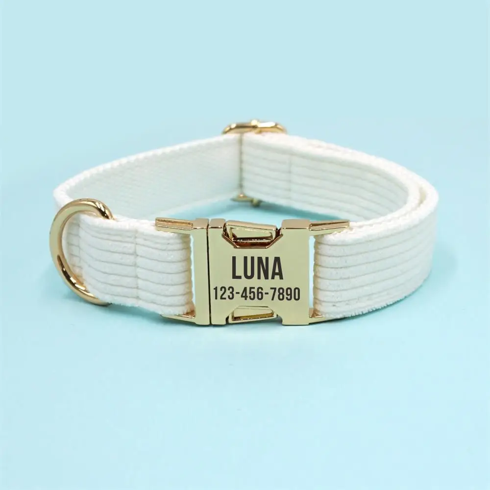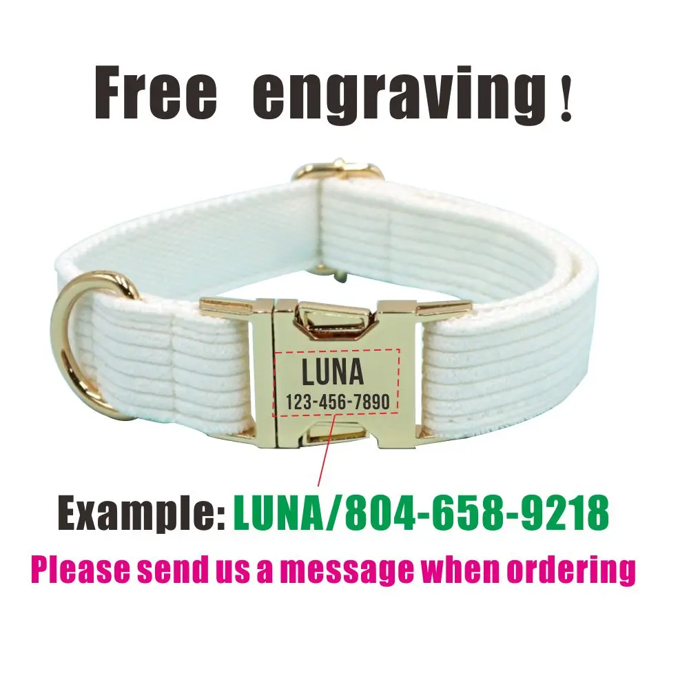 Collar de perro de pana blanca con grabado gratis, hebilla con nombre de identificación personalizado, suministro para perro, accesorio para mascotas, Collar para cachorro