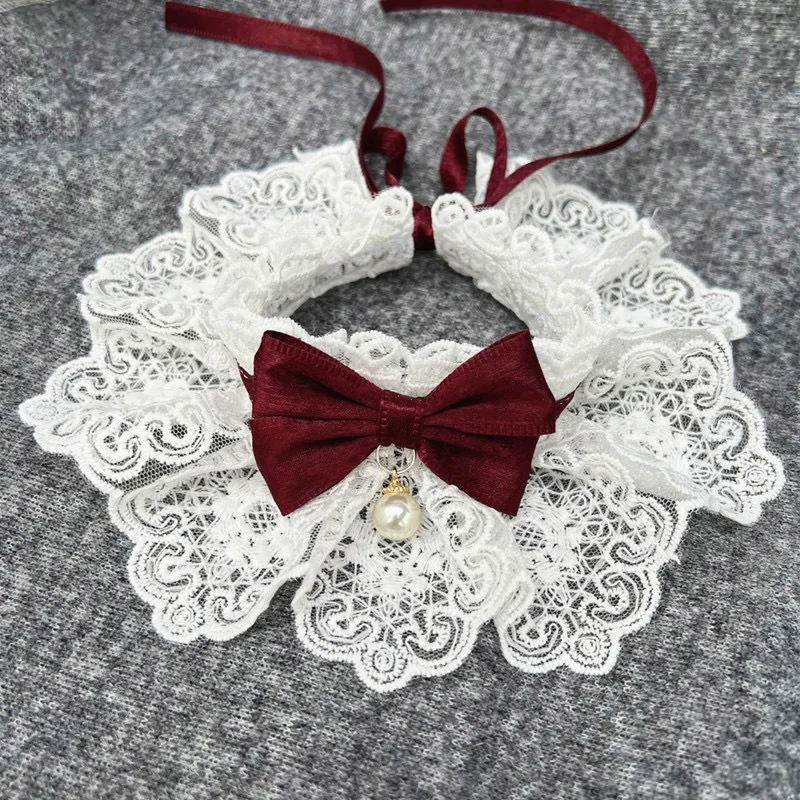 Con un patchwork de encaje floral con un lazo y adornos de perlas artificiales, este babero para mascotas es elegante y exquisitamente elaborado.Se ata con cinta y se puede ajustar al tamaño correcto para facilitar su uso.