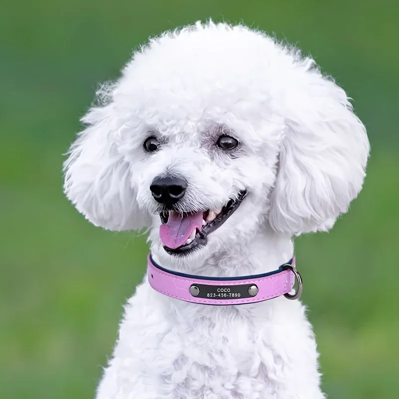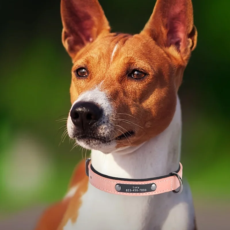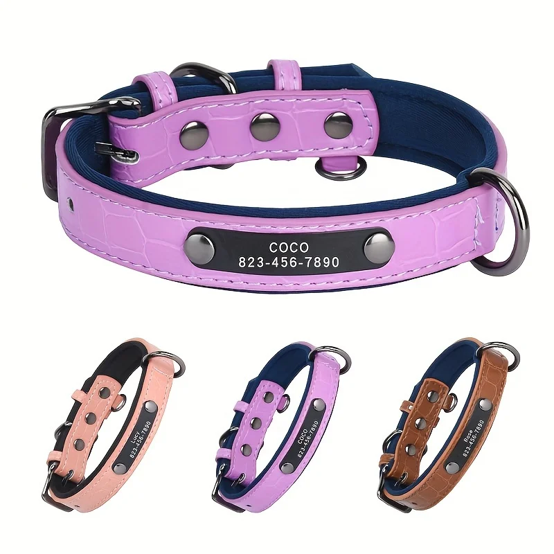 Collar de perro personalizado, Collar de cuero con placa de identificación de perro de cuero personalizado de leopardo para perros pequeños, medianos y grandes, Pugs de Bulldog Pitbull