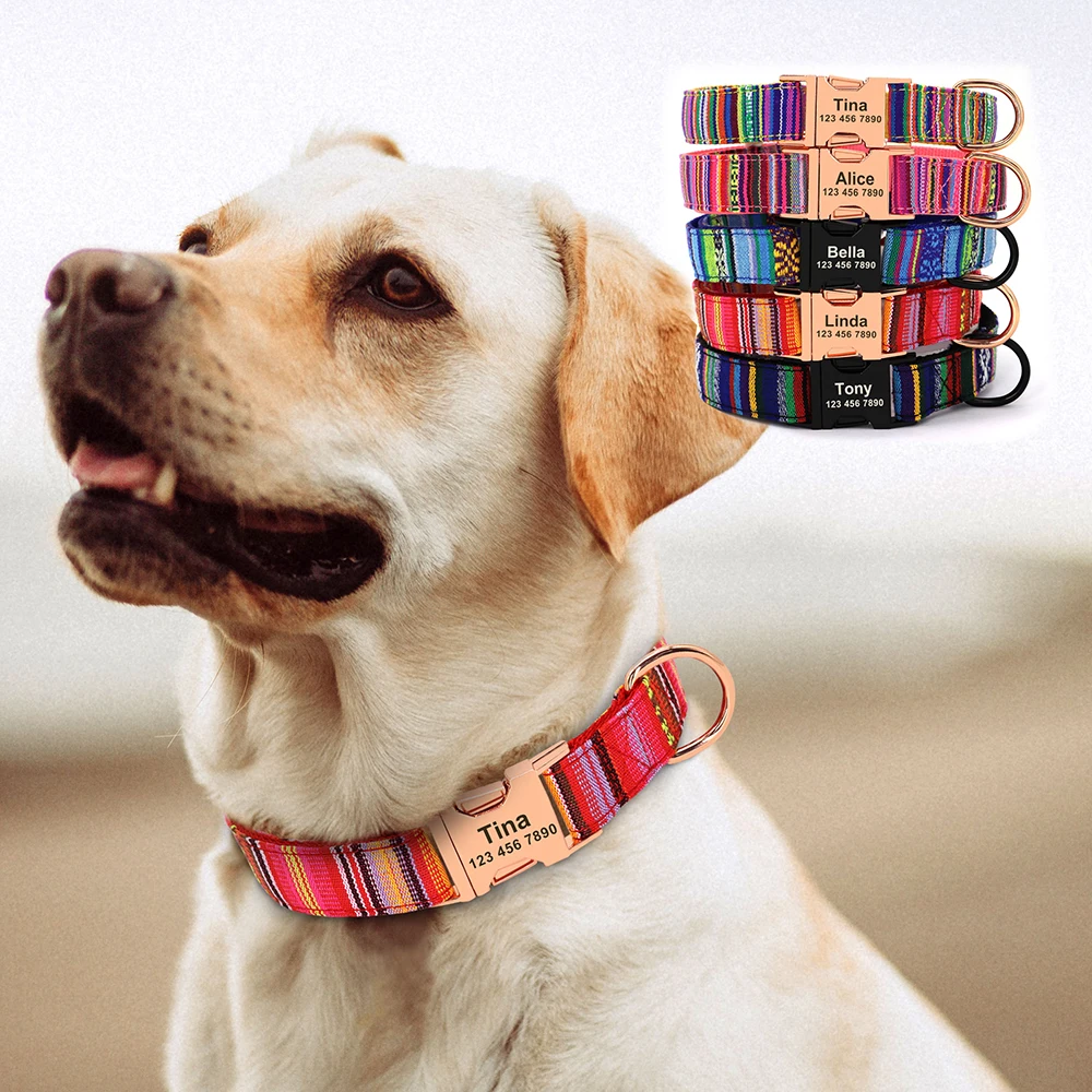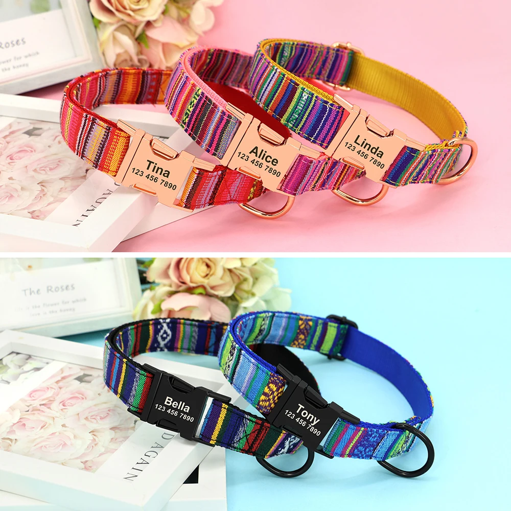 Collar personalizado para perro, Collar con hebilla de nailon colorido para mascota, placa con nombre antipérdida, etiqueta de identificación ajustable para perros pequeños, medianos y grandes S-L