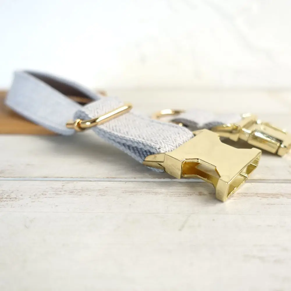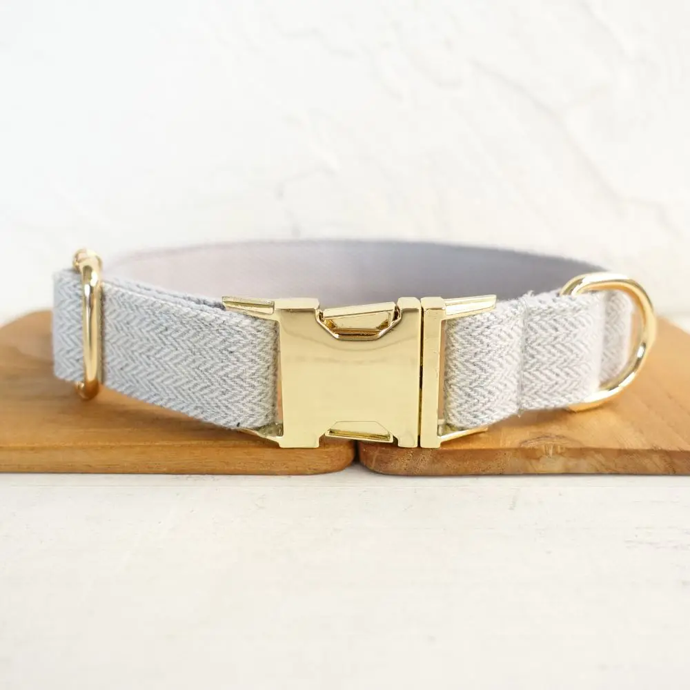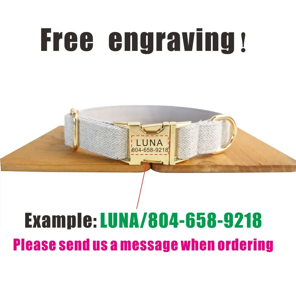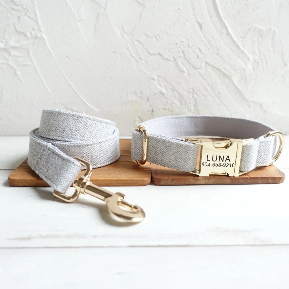 Nombre del producto: Collar personalizado para perros Collar personalizado para mascotas Grabado gratuito Etiqueta de nombre de identificación Accesorio para mascotas Traje grueso gris claro Juego de correa de collar para cachorros