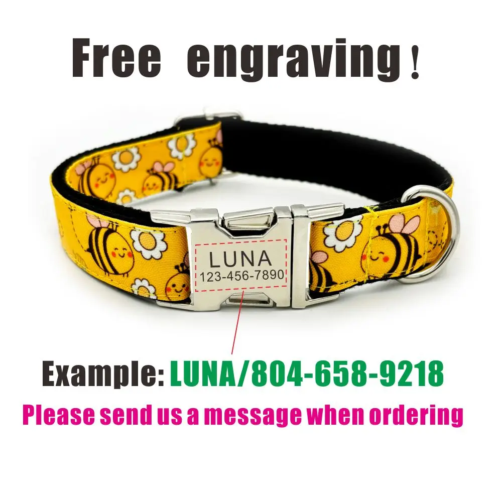 Nombre del producto: Collar personalizado para perros Collar personalizado para mascotas Etiqueta de placa de identificación con grabado gratuito Dálatanos para mascotas Collares para cachorros con puntos negros Correa