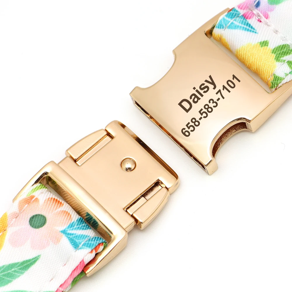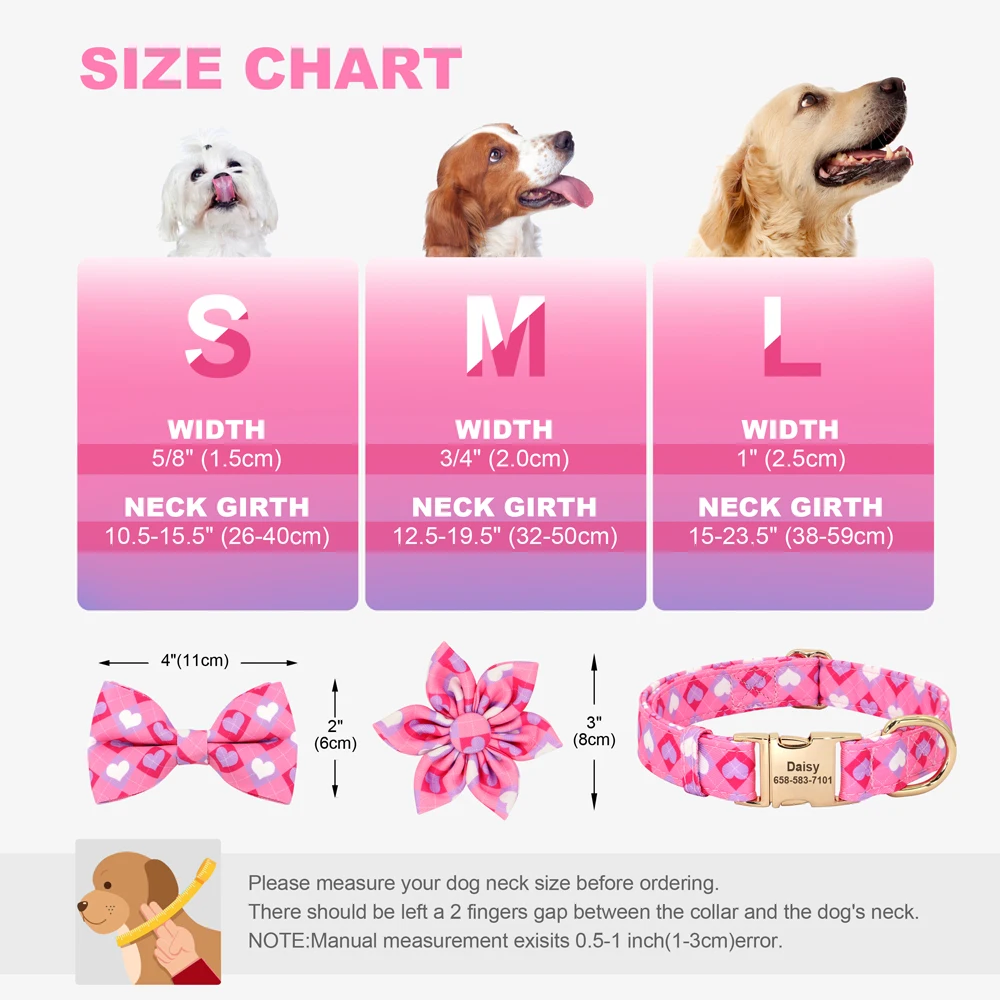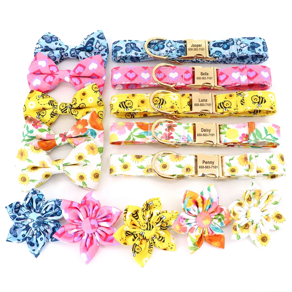 Collar personalizado para perro, bonito collar con lazo y flores para perros, collares de identificación para mascotas impresos, antipérdida para perros pequeños y grandes, accesorios para mascotas