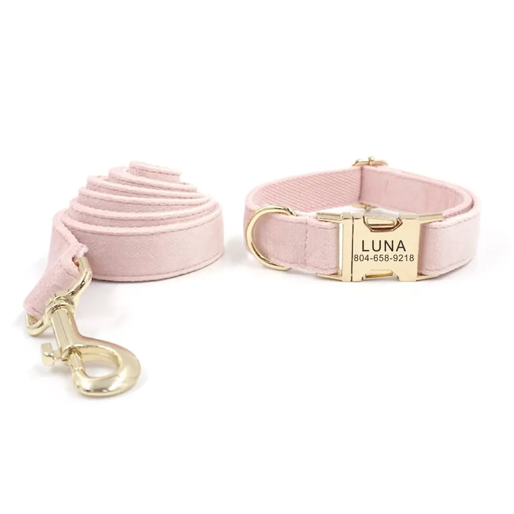 Nombre del producto: Collar personalizado para perros Collar personalizado para mascotas Grabado gratuito Etiqueta de nombre de identificación Accesorio para mascotas Juego de correa de collar de cachorro de fibra de terciopelo rosa