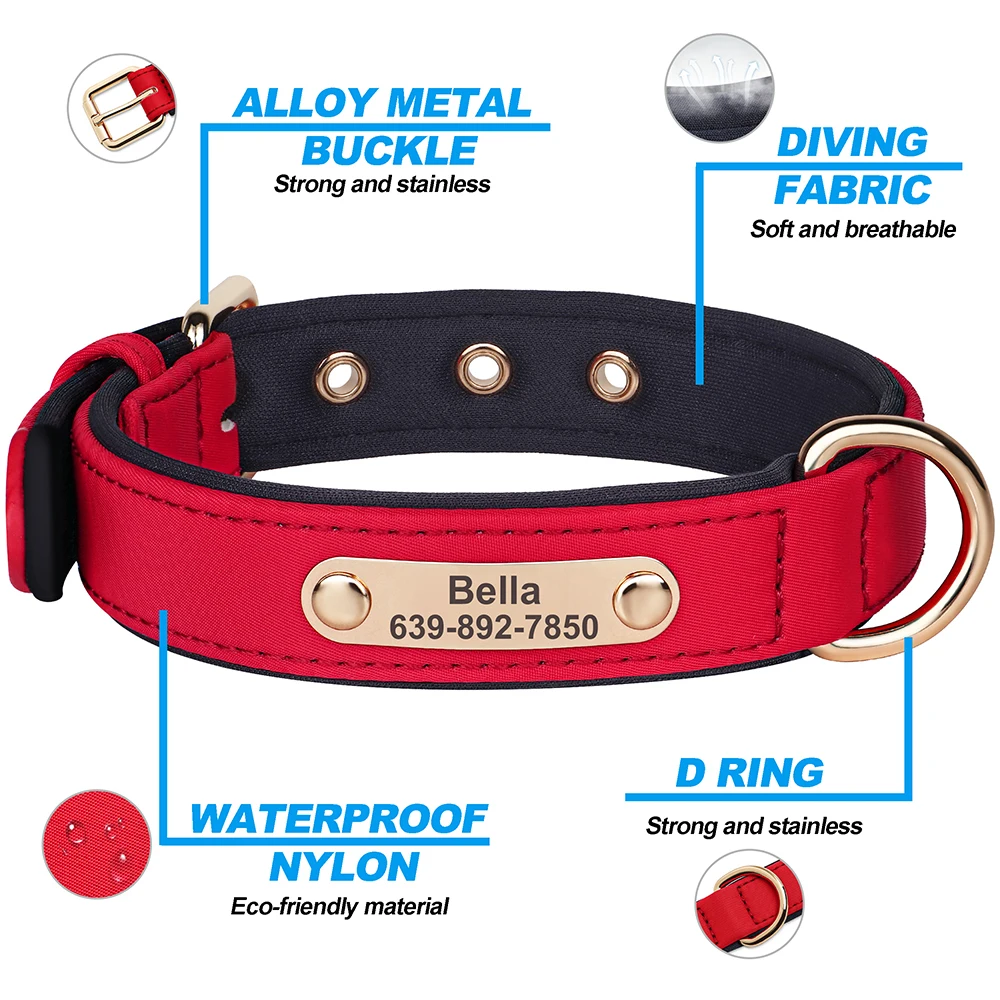 Collar personalizado para perros, collares para perros acolchados suaves, collar impermeable de nailon para mascotas, transpirable para perros pequeños y medianos, Chihuahua