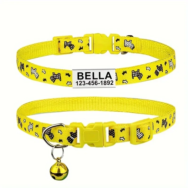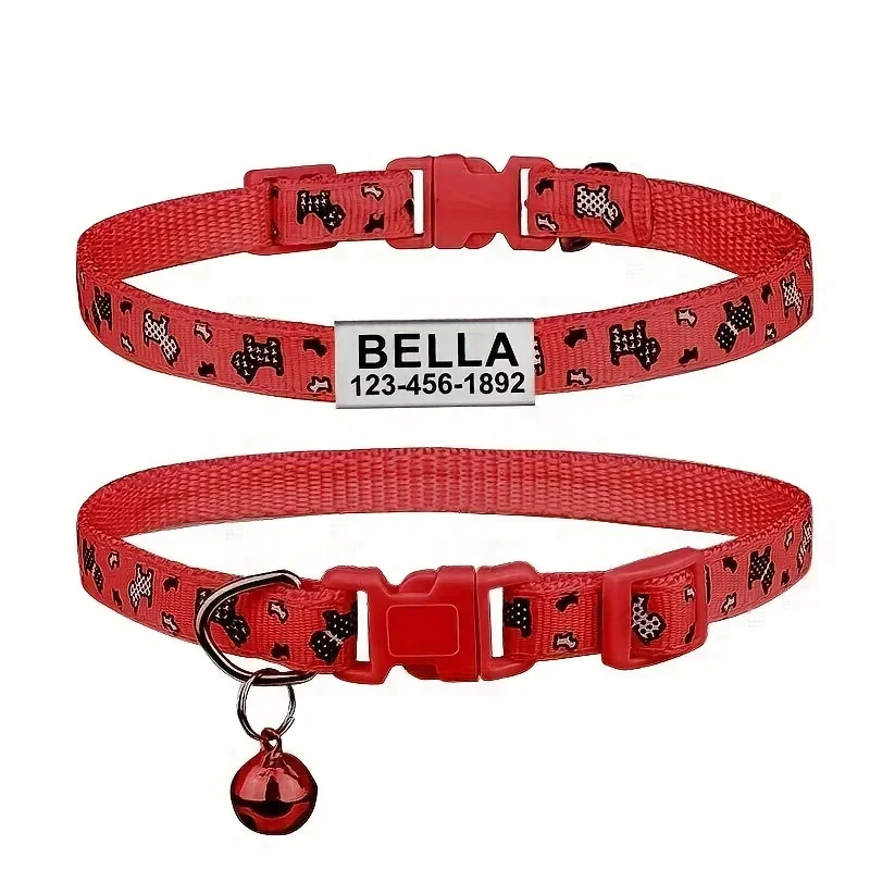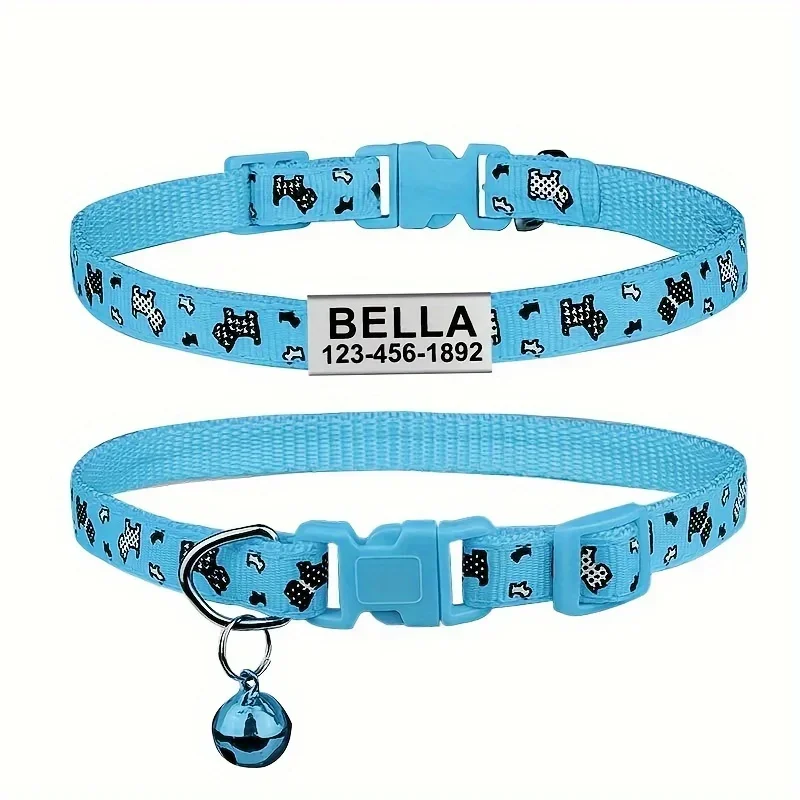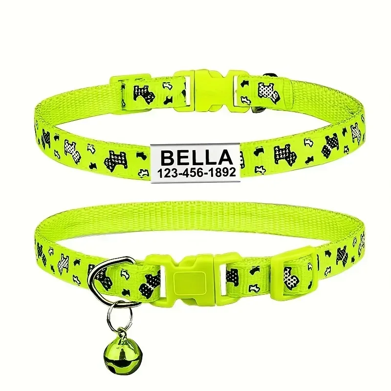 Collar de perro personalizado, collares para cachorros y gatitos de hueso de nailon, ID de nombre personalizado para mascotas, ajustable para perros pequeños y gatos, 1 ud.