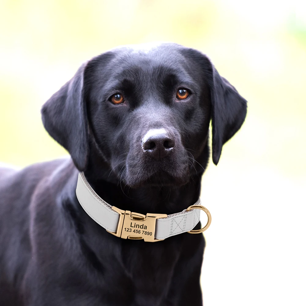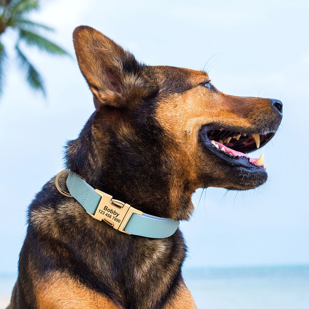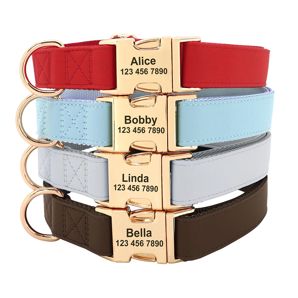 Collar personalizado para perros, collares de cuero para perros, Collar personalizado con etiqueta de identificación para mascotas, ajustable para perros pequeños, medianos y grandes, grabado sin Pug