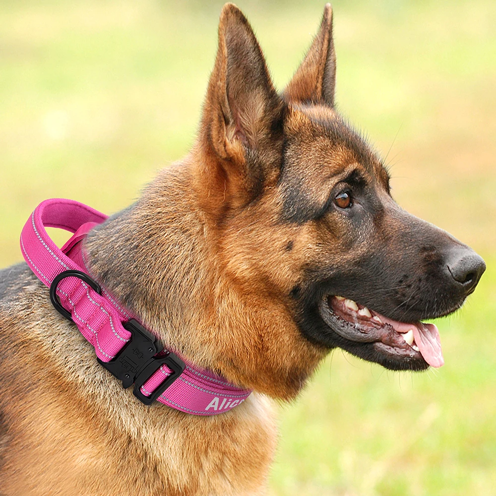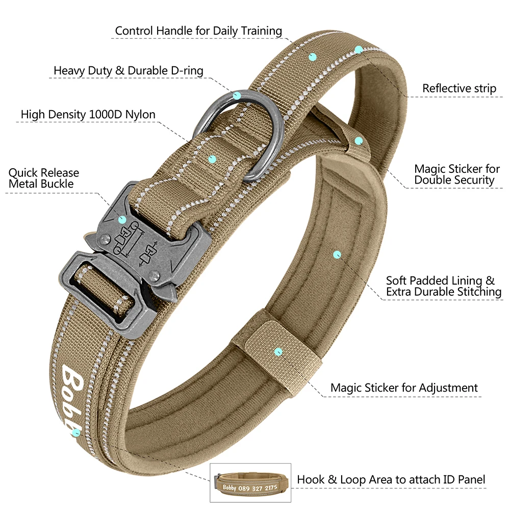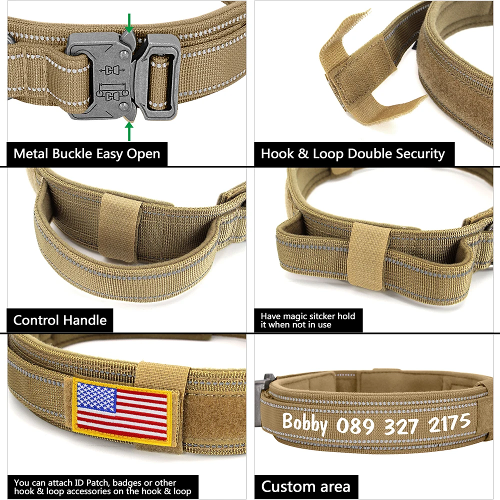 Collar de perro personalizado, collares de entrenamiento táctico militar para perros, reflectantes, duraderos, con mango fuerte para perros grandes