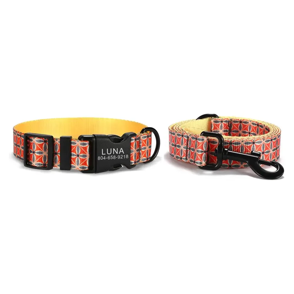 Collar de perro personalizado, correas a juego, nombre de identificación personalizado, hebilla de contactos, collares ajustables con estampado rojo para mascotas