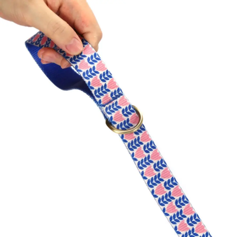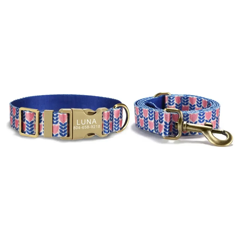 Collar para perro personalizado, correas a juego, collares para mascotas con forma de letra de identificación personalizada, hebilla de contacto, tulipán azul ajustable